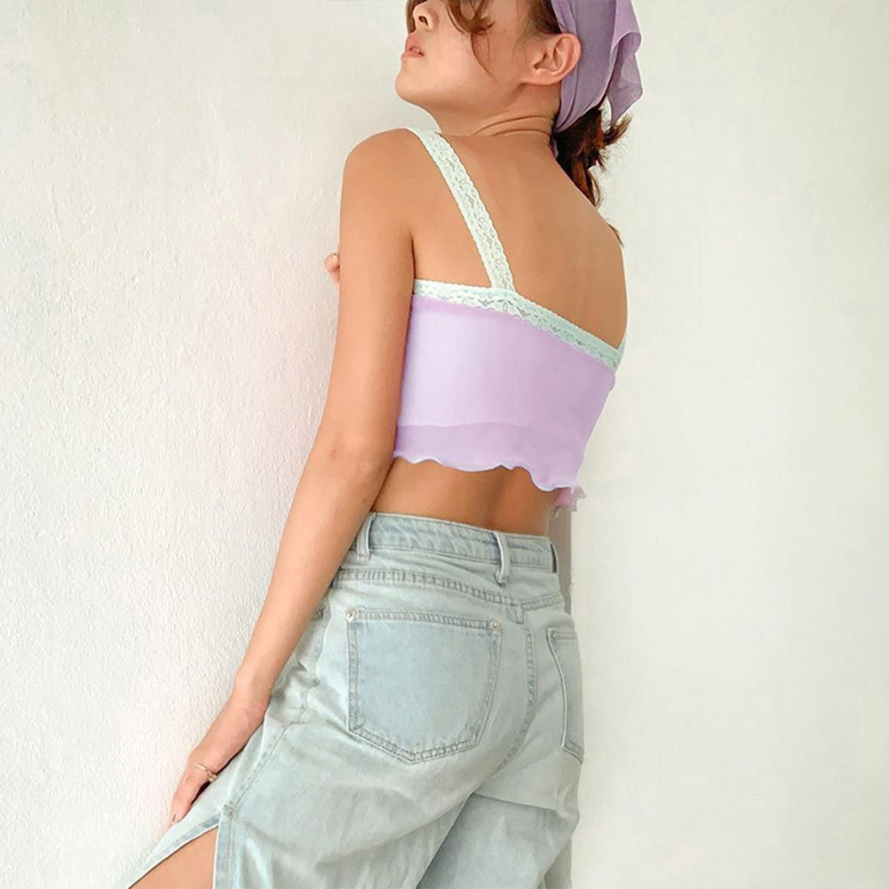 Женский укороченный топ Unif Y2k, новый модный милый двухслойный сетчатый топ с v-образным вырезом и рюшами на бретельках