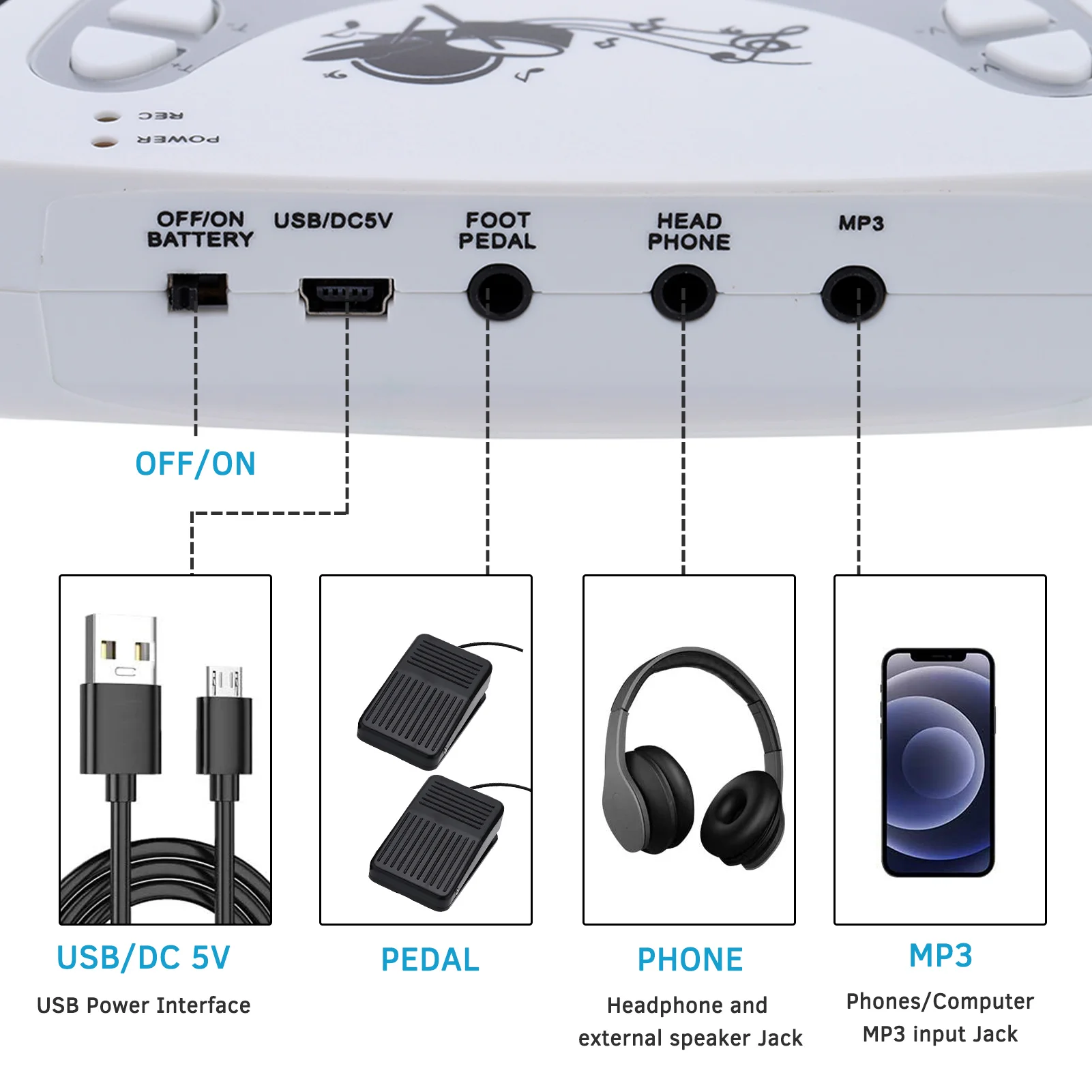 Этот электронный барабан без динамика. Вам нужно подключить его к усилителю или наушникам, чтобы насладиться звуком.