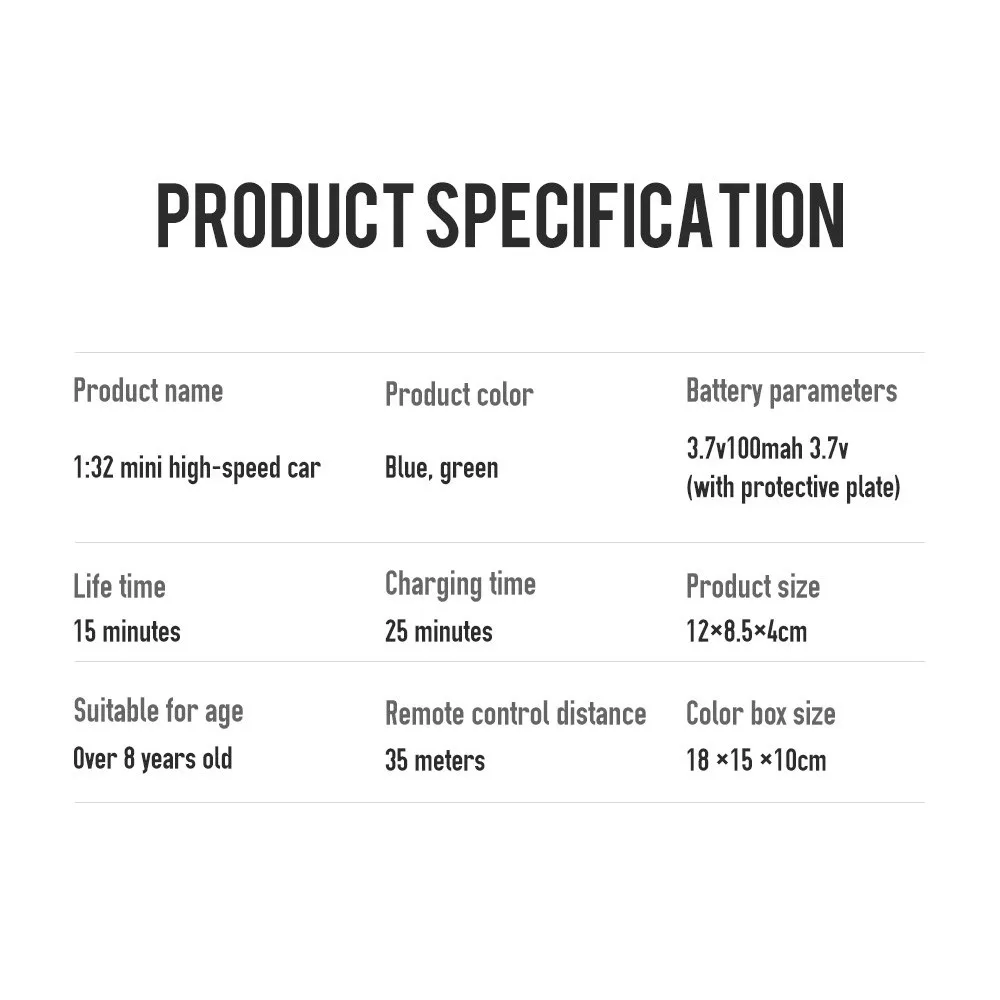 1/32 ультра мини гоночный автомобиль, чрезвычайно портативный. Максимальная скорость 20 км/ч