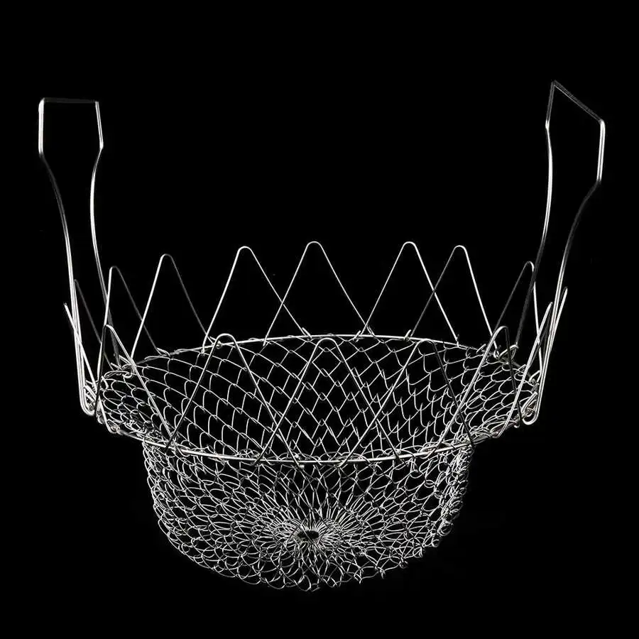 Корзина для жарки из нержавеющей стали, складывающаяся корзина с паровой полоской, ситечко для жарки