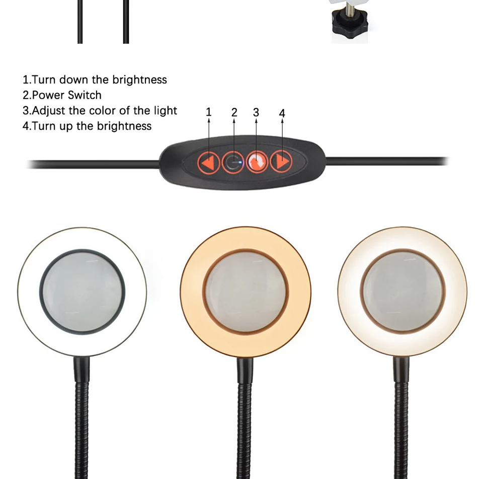 1. Основание из алюминиевого сплава, Черная мягкая резиновая прокладка. Плотно прижмите стол, чтобы предотвратить скольжение. 2. Используйте резиновые прокладки, чтобы паяльная станция скользила на верстаке. 3. 2 шт. Регулируемая Гибкая Универсальная рука-две гибкие руки помощи, универсальная соединительная трубка, может быть легко расположена там, где вы хотите. Устраняет разочарование традиционных помощников. 4. Зажим аллигатора может поворачиваться на 360 градусов, а затем «блокируется» на месте с накатанной гайкой большого пальца. 5. Увеличительное стекло с светодиодный светильник, цветовая температура светодиодный светильник может быть скорректирована в 3 уровня, и яркость может быть скорректирована в 11 уровней, которые могут удовлетворить различные рабочие среды. 6. Он подходит для компьютерных досок/производителей ювелирных изделий/любителей художественных ремесел/сварочных работ, он может использоваться универсально. Спецификация: Подложка: алюминиевый сплав Универсальная Соединительная труба Материал: пружинная сталь Универсальная Длина соединительной трубки: 240 мм/400 мм Увеличительное стекло: 3 раза светодиодный увеличительное стекло Светодиодный: 42 SMD светодиодный светильник Диаметр линзы: 60 мм Вес посылка: 600 г Посылка содержит: 1 х основание из алюминиевого сплава 1 x крокодил 1 x увеличительное стекло 2 x Универсальная соединительная трубка (240 мм/400 мм)