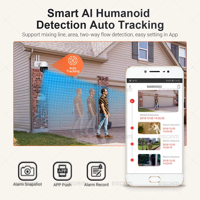 ESCAM QF518 5MP панорамирование/наклон AI человекоидное Обнаружение автоматическое отслеживание облачного хранилища Водонепроницаемая WiFi ip-камера с двухсторонним аудио ночным видением