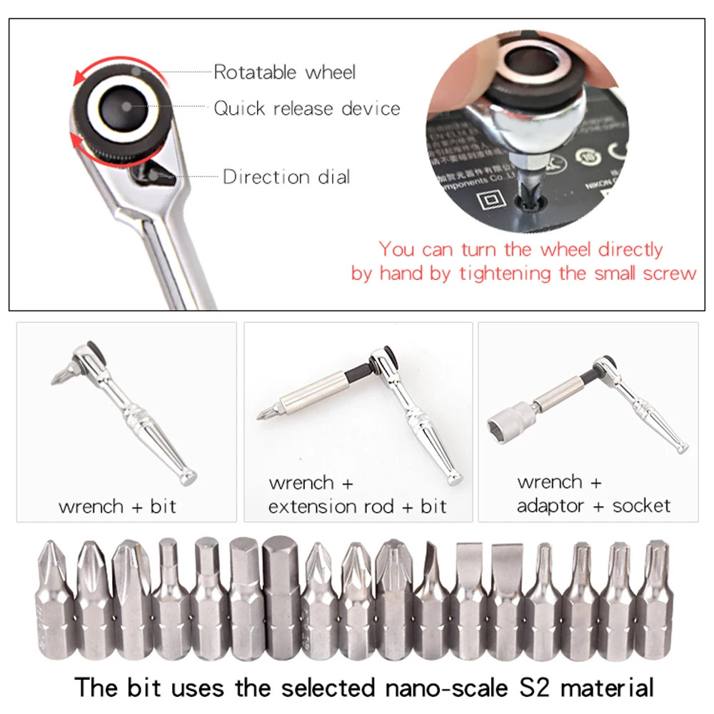 Мини Трещоточный ключ длина: 85 мм/3,3 дюйма