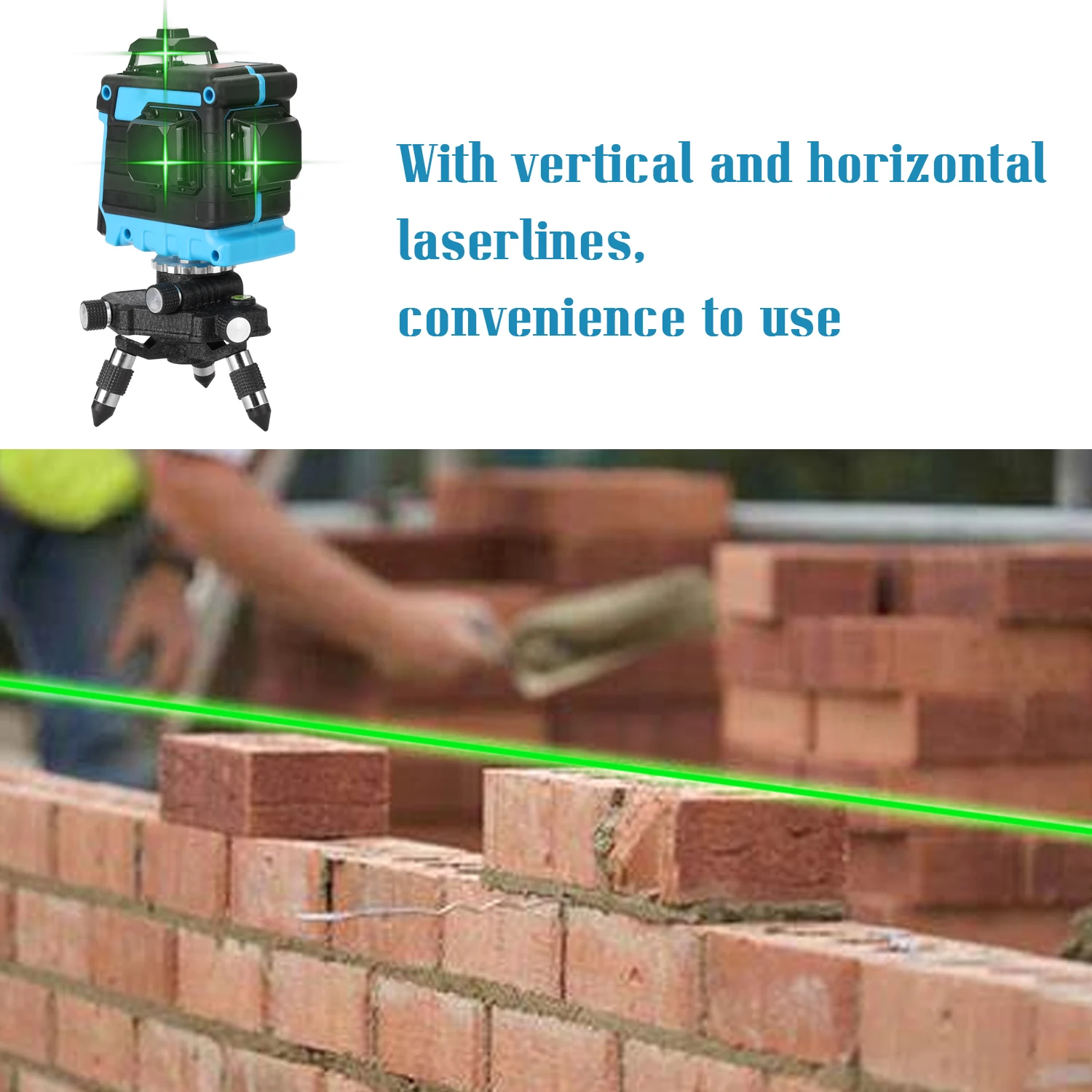 Это своего рода инструмент высокого качества, 3D 12 линий для более точного позиционирования, с самонивелирующейся системой, гибкостью и стабильностью. С вертикальными и горизонтальными лазерными линиями, удобство в использовании. Идеально подходит для различных видов применения, включая напольное покрытие, плитку, обшивку, обшивку стен, обшивку, отделку столярных изделий, обшивку стен и установку перегородок. Вы можете попробовать.