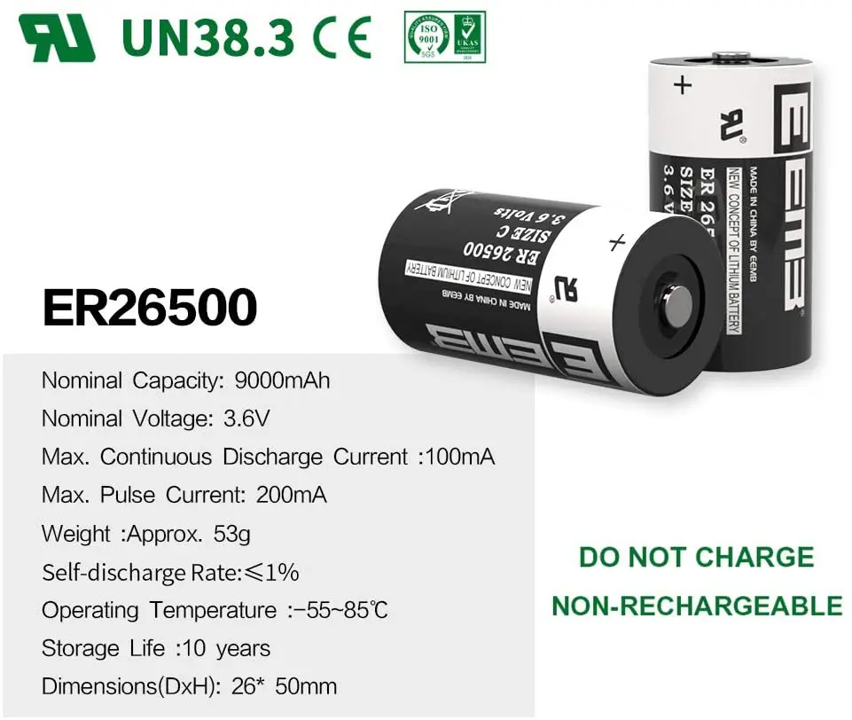 Неперезаряжаемая литиевая батарея ER26500 3,6 V 9000mAh C Размер