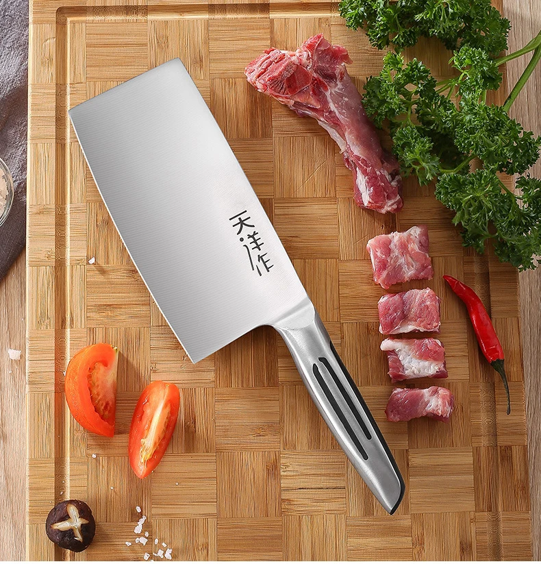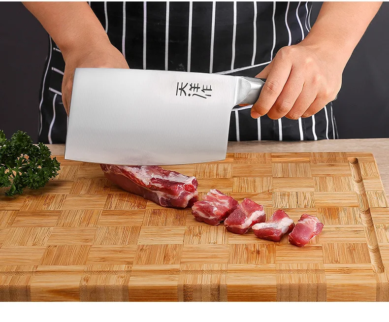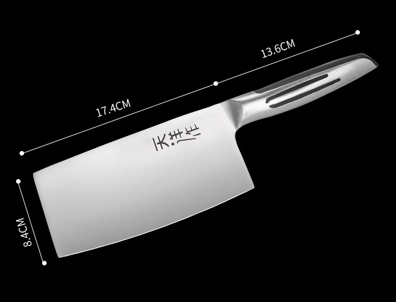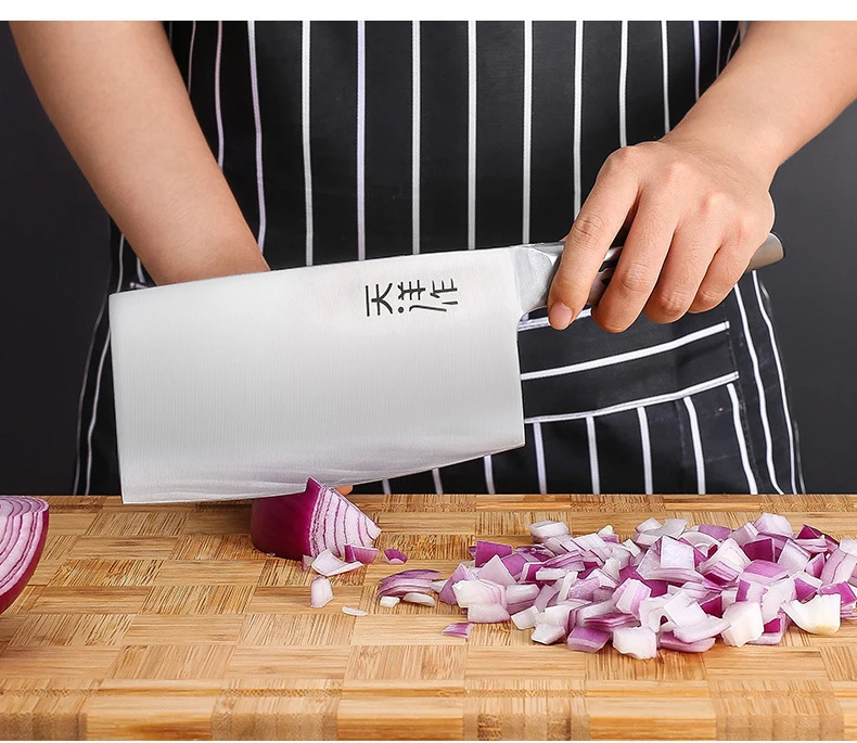 Multifunctional Chinese Knife Professional Chinese Slicer that can handle your daily kitchen tasks to chop, slice, chop and cut fruits, vegetables and meat. It is a versatile cooking knife for any home or professional kitchen chef Sharp Edge The blade is made of 3CR13MOV stainless steel, high Rockwell hardness, hand polished edges, 15 degrees per side. Carefully designed tapered stainless steel edges for easy and efficient cutting. Brushed blade design that anti-food sticks to the blade. Mirror blade, sharp and durable, maintain good brightness Stainless Steel handle carefully selected wood, healthy and environmentally friendly. Ergonomically designed handle, complete tang and perfect balance for ruggedness and complete control
