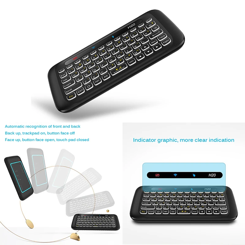 Беспроводная мини-клавиатура с графическими световыми индикаторами подходит для smart TV, компьютера, конференции и так далее.