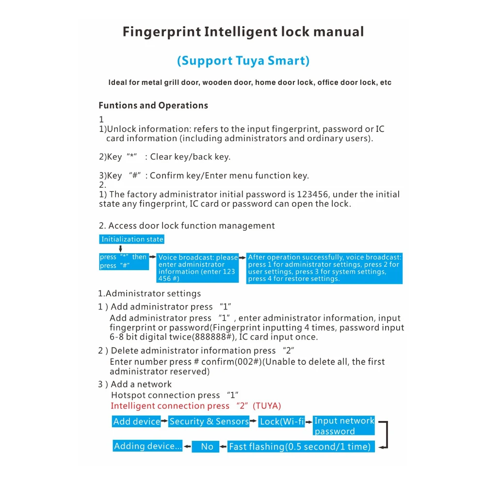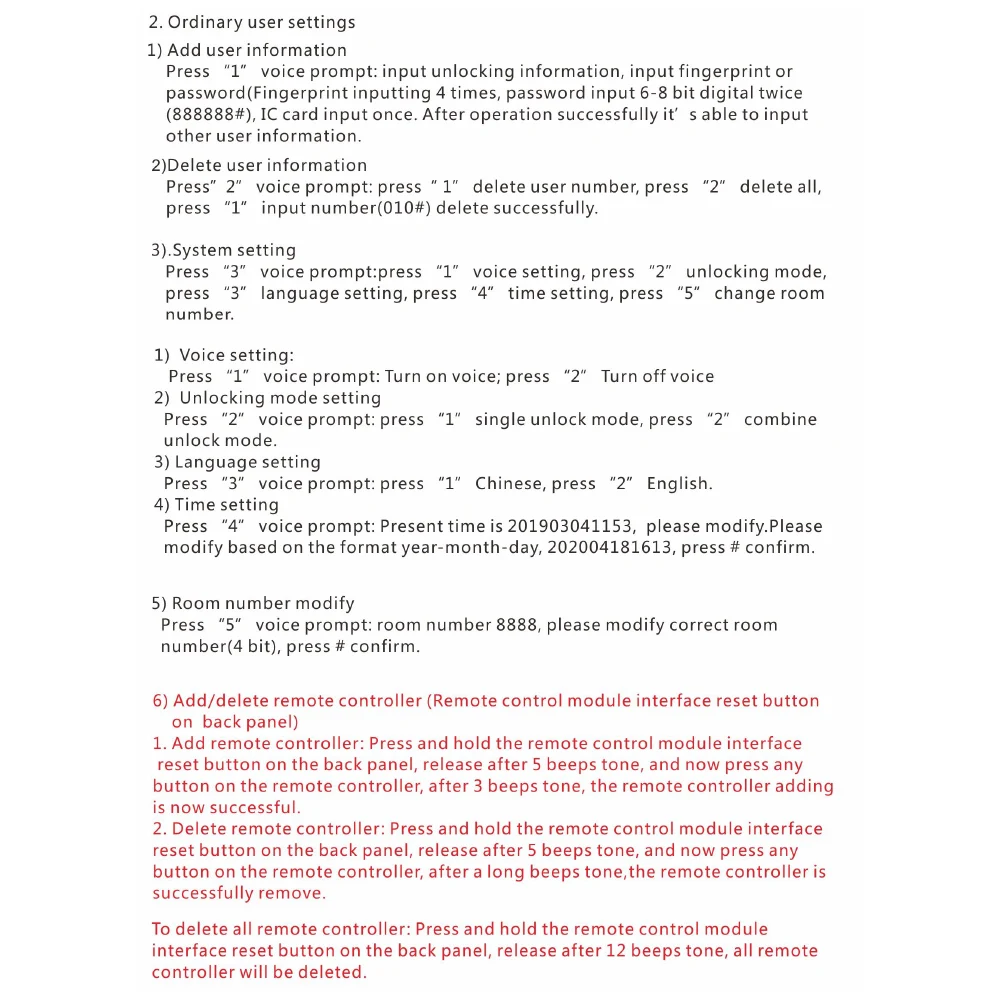 1. Поддержка разблокировки отпечатков пальцев, разблокировки паролей, разблокировки rfid-карт, механической разблокировки ключей, временной разблокировки паролем приложения.