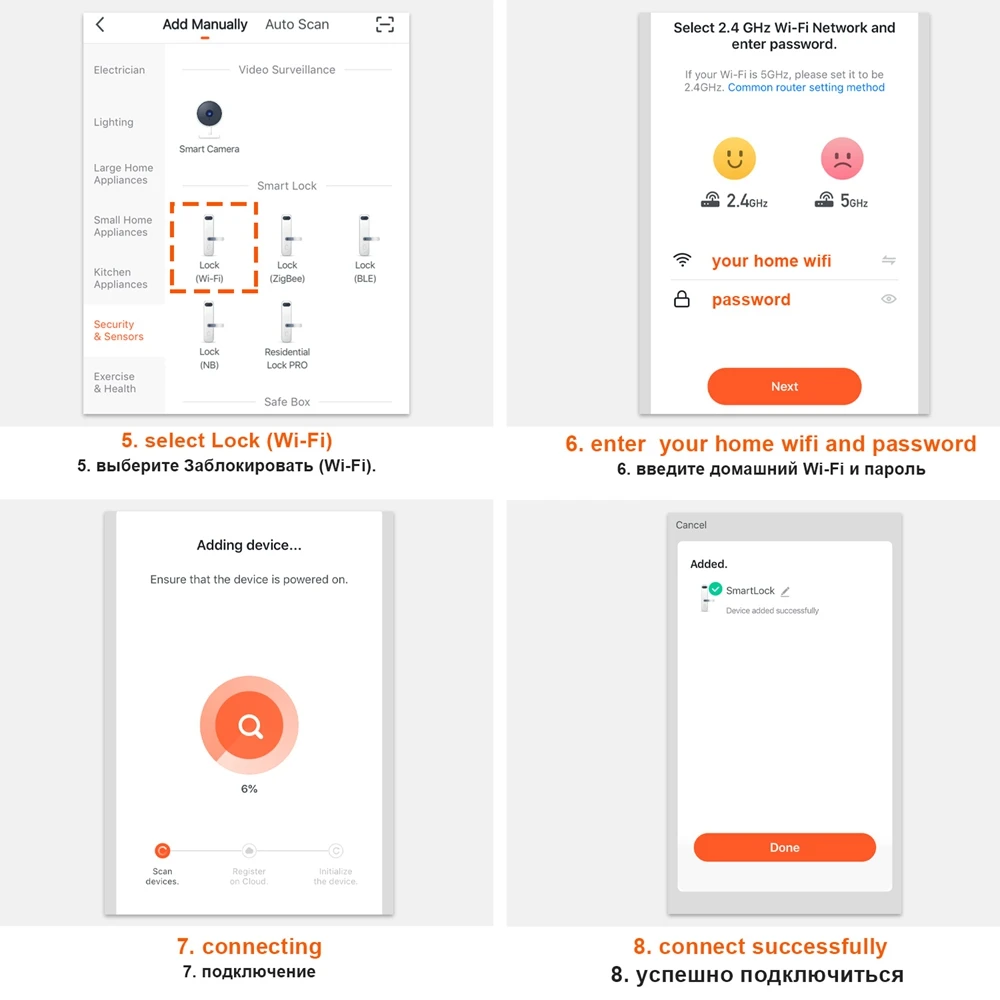 Если вы не дома, вы можете отправить приложение временный пароль для посетителя, и пароль будет недействительным после первого ввода.