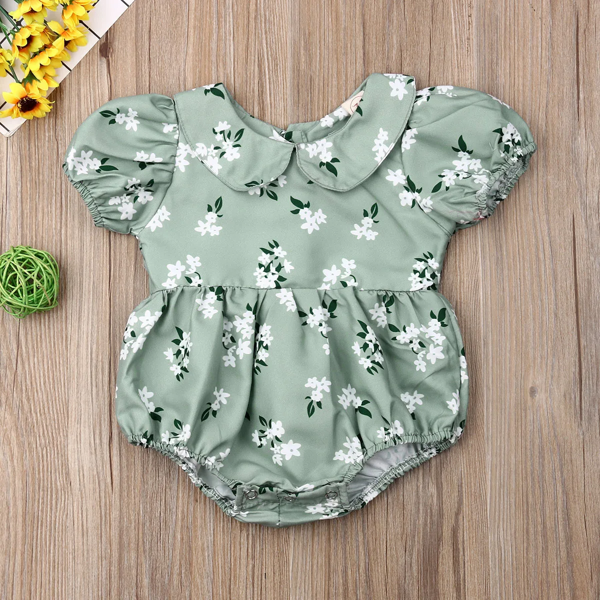 Новейший зеленый комбинезон с цветочным рисунком для новорожденных девочек!