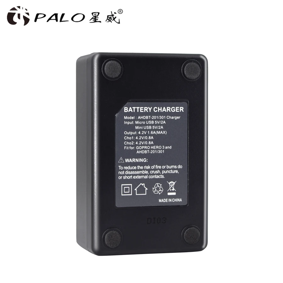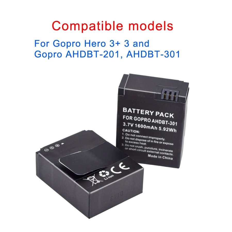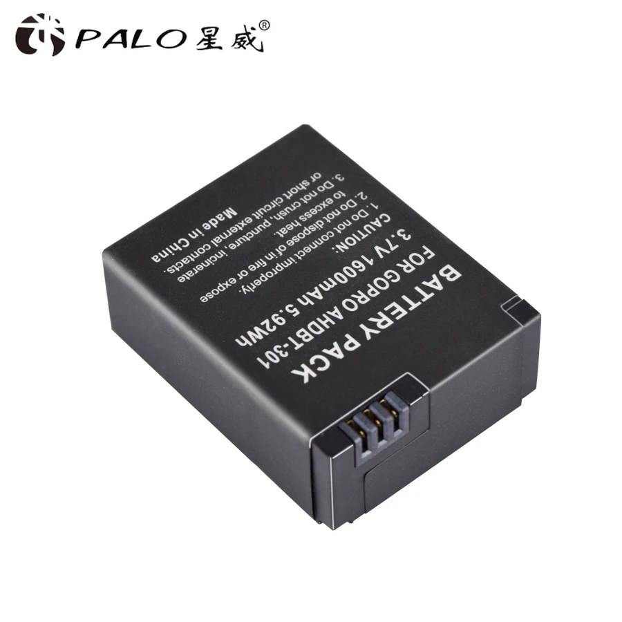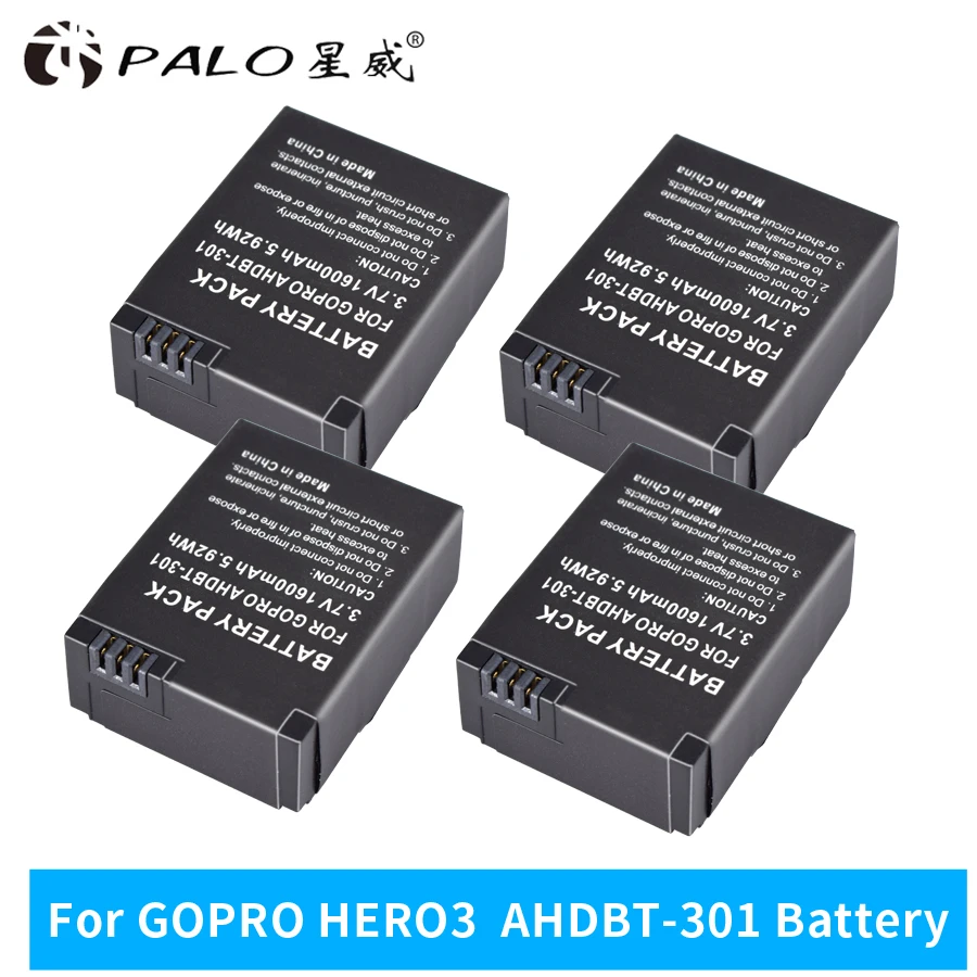 2 шт. 3,7 V 1600 mAh литий-ионная аккумуляторная батарея для камеры Gopro AHDBT-301 аксессуары с черным зарядным устройством для путешествий