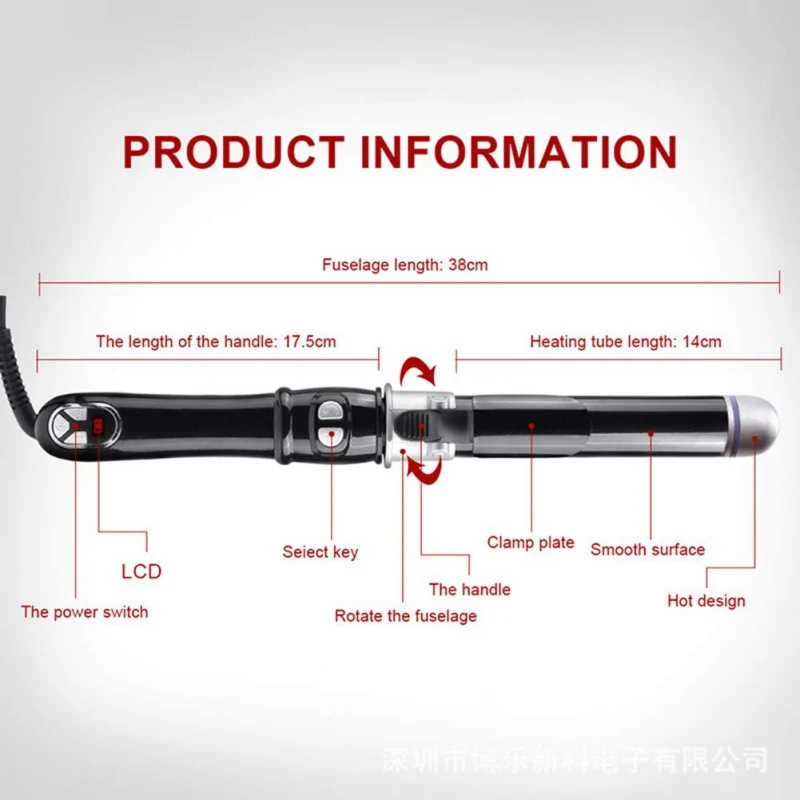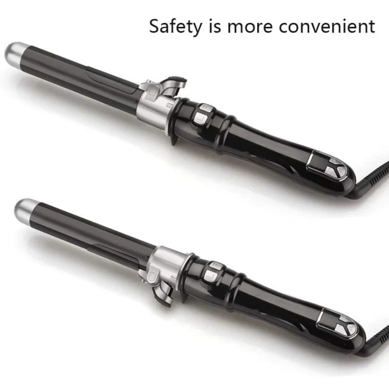 Черный вращающийся на 360 градусов, автоматический бигуди для волос 28 мм, нагревательная керамическая трубка, контроль температуры, цифровой ЖК-дисплей и функция автоматического отключения для всех типов волос