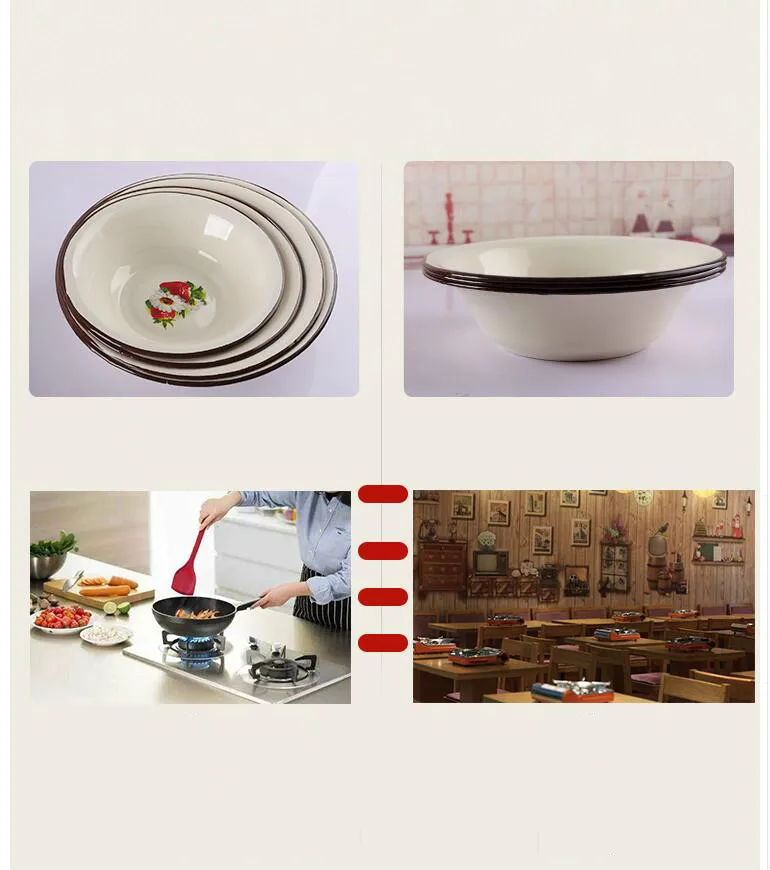 Параметры продукта Наименование: Эмалированная чаша Материал: эмаль Узор: растения и цветы Количество чаш: 5 чаш в пакете Примечание: в пакете 5 чаш Размер: 20 см, 22 см, 24 см, 26 см Емкость: 800 мл, 1000 мл, 1200 мл, 1500 мл Использование: его можно использовать для заполнения пельменей, лапши и овощей, Характеристики: здоровый материал, большая емкость, легко моется, может нагреваться при открытом огне Область применения: газовая плита, электрическая печь, индукционная плита, электрическая гончарная печь, галогенная печь и т. д. Не подходит для: духовки, микроволновой печи Информация о продукте 1. Утолщение края: утолщенная эмаль, прочный и прочный, утолщенный корпус чаши, расширенный край, легко обрабатывается, безопасный и здоровый материал, может быть использован легко 2. Изысканная печать: Изготовлен из изысканного узора, узор сделан из глазури, не выцветает, не тускнеет, но содержит содержимое, которое может добавить цвет в вашу горячую миску 3. Утолщенное дно: глазурь тонкая и гладкая, текстура тонкая и легко моется, эмалированные изделия имеют определенные не липкие, не легко наклеивать масляные пятна, легко чистить и использовать Технологические ограничения Ручная эмалированная глазурь, эмаль-это изделие ручной работы. В процессе ручного производства неизбежно произойдет неравномерная глазурь, черные пятна, вогнутые и выпуклые отметки, вызванные падением золы. Нет идеальной эмали. Если вам не нравится красота эмали, Вы найдете красоту. Это не влияет на использование. Это нормальное явление, не проблема качества продукции, а ограничение процесса О дефектах продукта 1. Это нормальное явление, а не проблема качества продукта, чтобы оставить точки поддержки на краю чаши 2. Тестовая глазурь с краями будет неровной глазурью, не влияет на использование, это нормальное явление, а не проблемы с качеством продукции 3. Ограничение процесса может привести к капанию глазури, что является нормальным явлением, не является проблемой качества продукта и не влияет на использование Стиль продукта 【A】 эмалированная чаша 20 см Случайный узор Наружный диаметр верхней части: 20 см Внутренний диаметр верхней части: 17 см Диаметр дна: 11 см Высота: 5,5 см Емкость: 800 мл 【B】 эмалированная чаша 22 см Случайный узор Внешний диаметр верхней части: 22 см Внутренний диаметр верхней части: 18 см Диаметр дна: 12 см Высота: 5,5 см Емкость: 1000 мл 【C】 эмалированная чаша 24 см Случайный узор Внешний диаметр верхней части: 24,5 см Внутренний диаметр верхней части: 20 см Диаметр дна: 14 см Высота: 6 см Емкость: 1200 мл