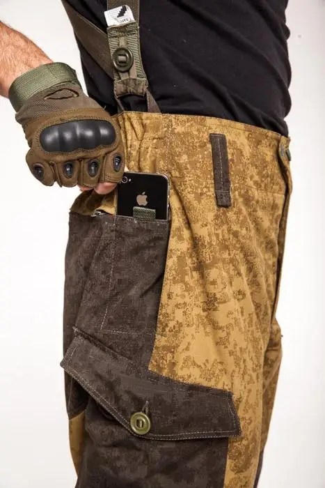 Если в первых моделях "Горки " производителем использовался 100% хлопок, то в новой версии применяется смесовая ткань с армированием, состоящая из хлопка и полиэстера. Для внутренней отделки используется мягкий и плотный флис. Это увеличивает устойчивость изделия к износу, создает более надежную защиту от непогоды. Костюм абсолютно не шуршит при ходьбе, что очень важно для успешной охоты. Для обеспечения прочности в "Горке" используется так называемый "джинсовый" шов. Костюм Горка с флисом отличается свободным покроем, поэтому одежда не стесняет движений, а в осенне-зимний период вы сможете использовать дополнительные слои утепления. Продуманный фасон гарантирует хорошую посадку одежды по фигуре независимо от особенностей комплекции. В частности, на рукавах и штанинах имеются стяжки, благодаря которым достигается нужная степень прилегания. Участки, которые быстрее всего изнашиваются, снабжены усиливающими накладками. Костюм "Горка" на флисе хаки снабжен 11 карманами разного размера. Здесь найдется место как для инструментов, так и для смартфона и других необходимых в полевых условиях гаджетов.
