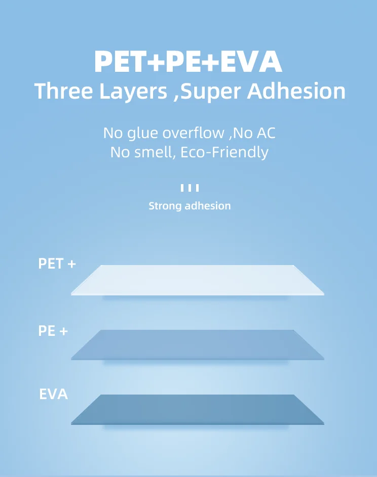1. Почему ламинирование? Ламинируя, вы защищаете и сохраняете свой принт. Это может быть что-нибудь от сертификата, присваиваемого детям в школе, до рекламного покрытия автомобиля вашей компании на автофургоне. Ламинирование также улучшает внешний вид, увеличивая почти любой тип печатных материалов. Он углубляет и осветляет цвета и Улучшает контрастность. Ламинированные материалы также обеспечивают высокое качество отделки, что является важным фактором для многих предприятий по всему миру как профессиональная брошюра, листовка или визитная карточка могут улучшить имидж компаний и помочь создать больше продаж. В наличии несколько различных пленок и мешков. Наиболее популярными являются матовые и глянцевые, но они также доступны в отделках, включая мягкое прикосновение, анти-граффити для наружного использования и экологически чистые биоразлагаемые. 2. Каковы Преимущества вашей продукции? 1) три слоя, супер адгезия 2) плоские, без деформационных углов 3) антистатические 4) высокая прозрачность