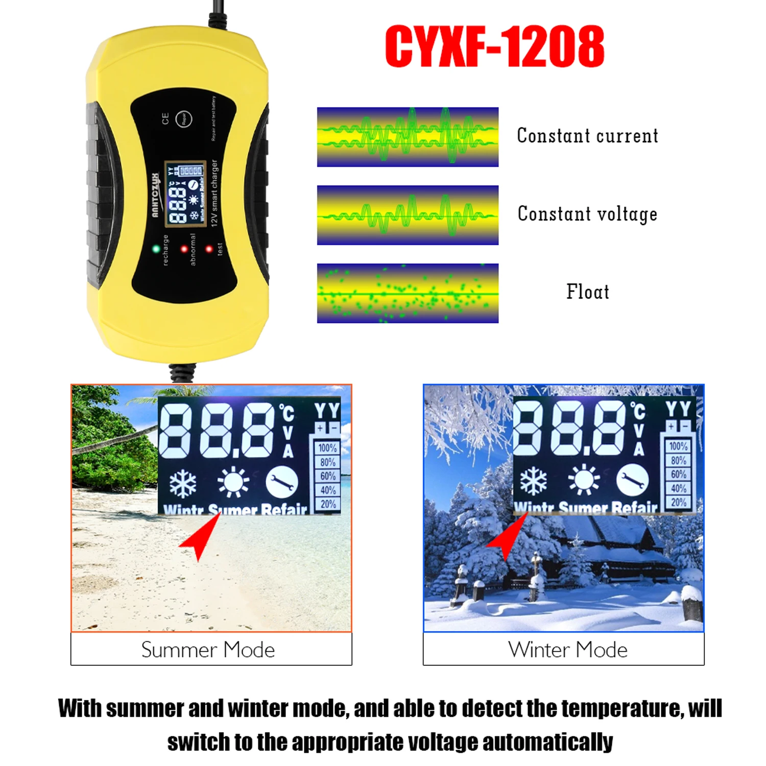 Оснащен зимним режимом (когда температура окружающей среды ниже + 10 ℃, Поднимите напряжение зарядки) и летним режимом (когда температура окружающей среды выше + 28 ℃, уменьшите напряжение зарядки).