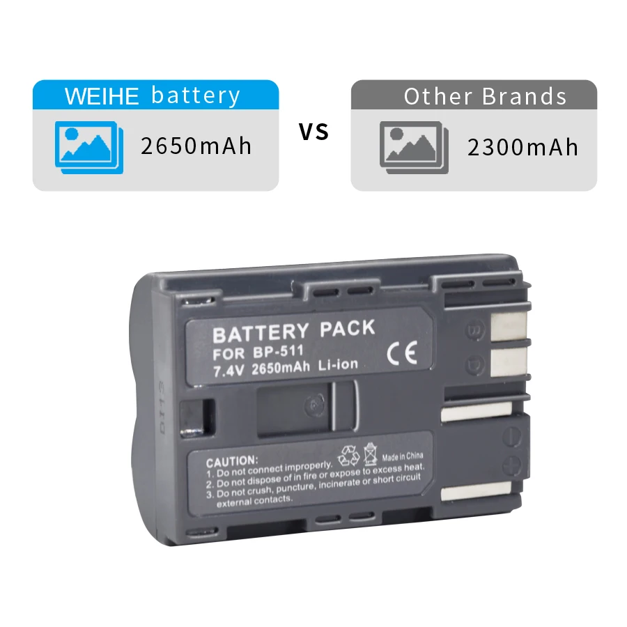 Аккумулятор камеры BP-511 2650 мАч аккумуляторная батарея для Canon EOS 40D 300D 5D 20D 30D 50D 10D D60 G6 BP511 FV40 FV30 FV100 200