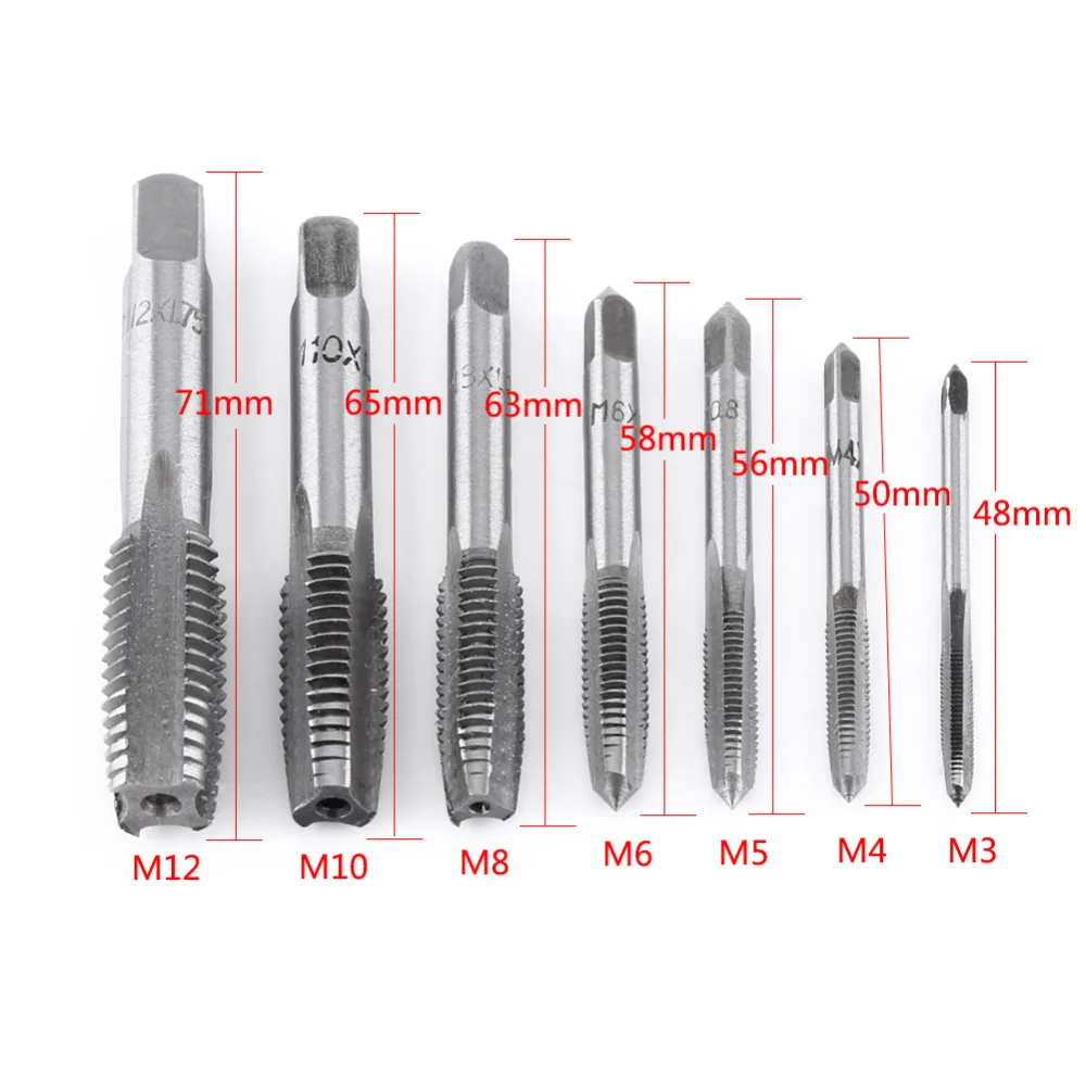 * Размер: M3x 0,5 мм, M4x 0,7 мм, M5x 0,8 мм, M6x 1,0 мм, M8x 1,25 мм, M10x 1,5 мм, M12x 1,75 мм