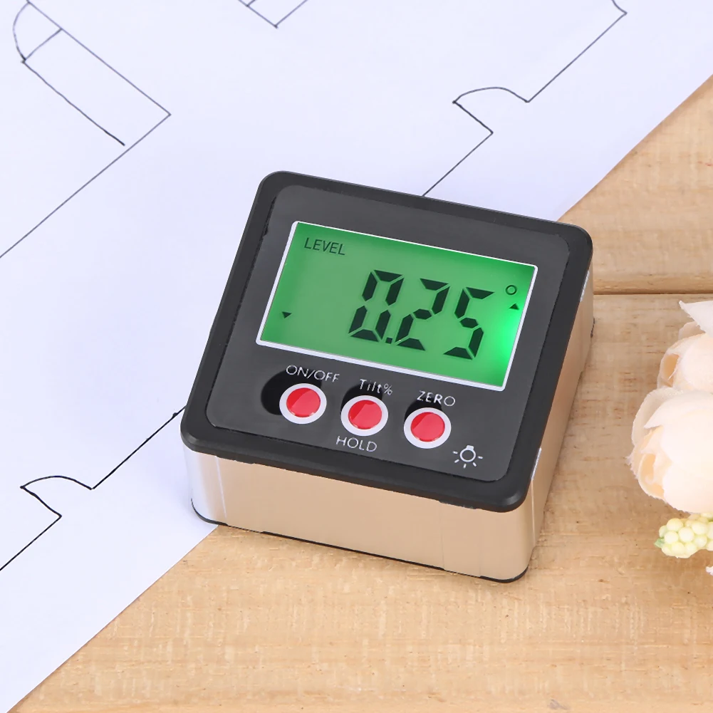 <Использование: Мини цифровой транспортир отображает романы в градусах, дюймах, мм/м, Процентном наклоне.