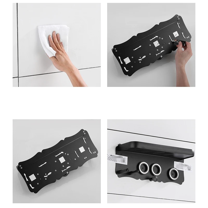 [Конструкция без сверления, простота установки]: кронштейн для сушилки для волос Dyson Можно надежно зафиксировать с помощью высококлассного клея и не приклеивать к стене; Или традиционная установка с помощью винтов.