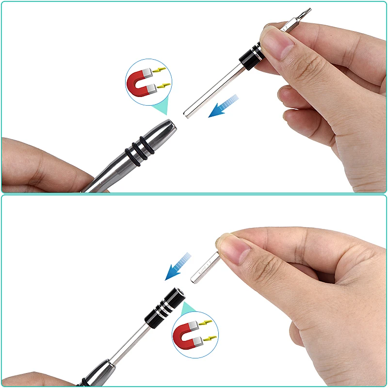 Содержимое: 1 пластиковая ручка, 1 рычаг общего назначения, 1 удлинитель, 1 пинцет, 2 рычага, месяц, BisonFone, 1 Магнитный/демагнитизирующий агент, 1 присоска, 2 треугольника, 1X1/4-4 мм адаптер привода Набор отверток 115 в 1 детали: 17 разборных аксессуаров, 1 ручка, 1 гибкий Удлинительный вал, 1 Удлинительный стержень, 1 пинцет, 3 пластиковых приспособления для удаления 1 SIM-карты, 1 намагничиватель/размагничиватель, 1 присоска, 6 отверстий, 1 держатель для силовой отвертки 98 насадок для отвертки Phillips:2 * PH0000 2 * PH000 2 * PH00 2 * PH0 2 * PH1 2 * PH2 Слот: SL1.0 SL1.3 SL1.5 2 * SL2.0 2 * SL2.5 SL3.0 SL3.5 SL4.0 Трокс: T1 2 * T2 2 * T3 2 * T4 2 * T Прочный материал: этот тонкий набор механических отверток изготовлен из превосходного антистатического и прочного CRV. Подходит для демонтажа и обслуживания различных предметов, таких как ноутбуки, iphone, планшеты, часы, очки, цифровые камеры, PS4, Nintendo и т. д. Портативный и простой в использовании: все инструменты упакованы в небольшую пластиковую коробку без деталей инструмента. Вы можете легко носить их с собой и хранить их хорошо. Этот набор отверток прост в использовании, будь то профессионал или новичок. Это идеальный подарок для вашего отца, семьи, друга, коллеги и многого другого. Магнитное хранилище для винтов: в наш набор инструментов есть коврик для хранения винтов, который вы можете использовать для хранения крошечных, но важных винтов. Не беспокойтесь об отсутствии винтов при разборке или пересборке устройства, чтобы вы могли эффективно работать. Гибкий вал: наш вал может гнуться, вращаться на 180 градусов, решает мертвый угол, который не может быть достигнут обычным инструментом. А также с удлинителем, нескользящей ручкой и простым в использовании. Не говоря о том, что у нас есть полное обслуживание после заказа.