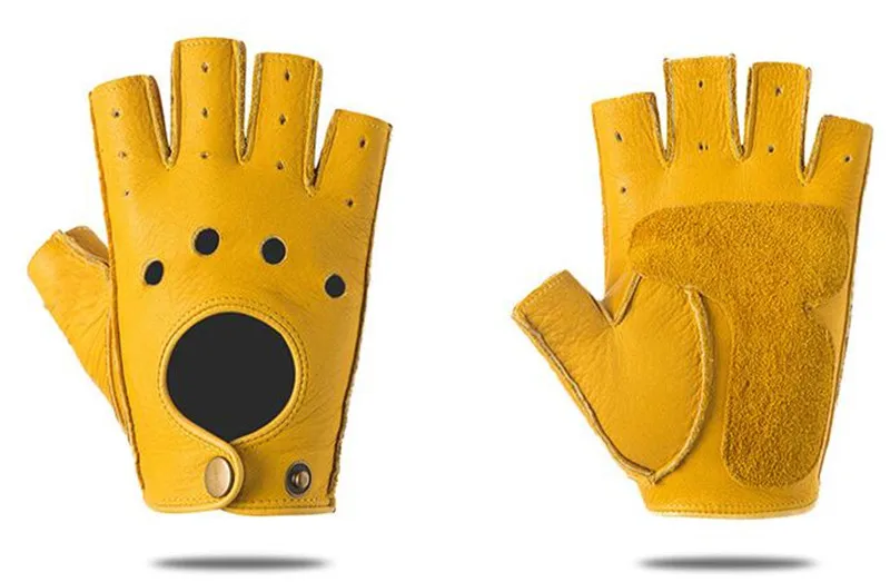 Черные перчатки изготовлены из овчины, желтые-из воловьей кожи.