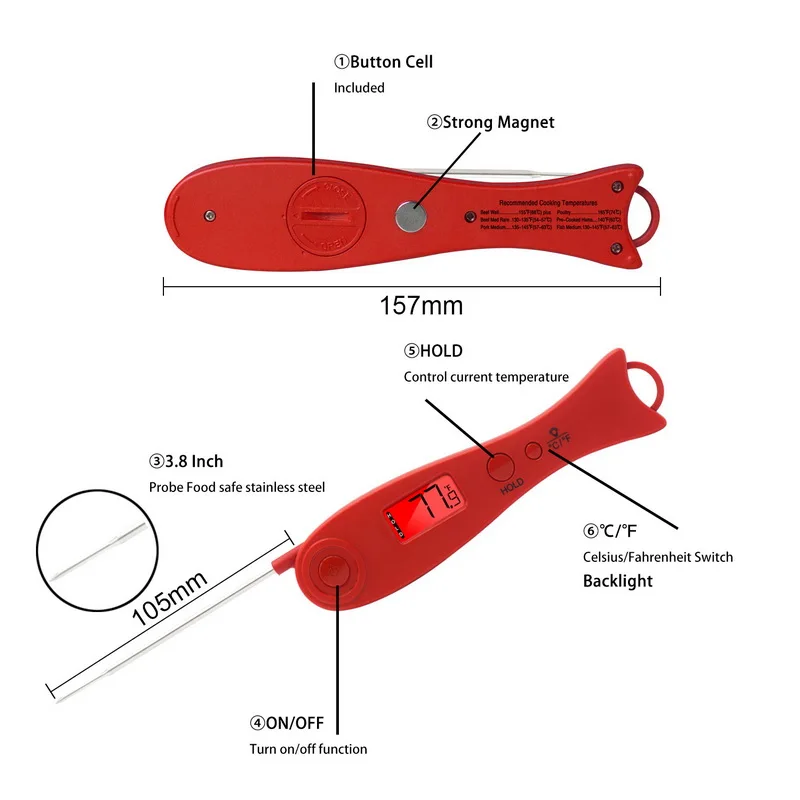 <Применение: отлично подходит для барбекю, барбекю, приготовления пищи и многого другого. Может использоваться для измерения температуры мяса, овощей, молока, воды и других продуктов.