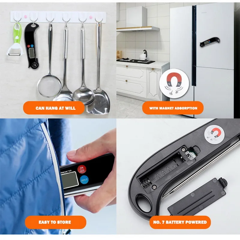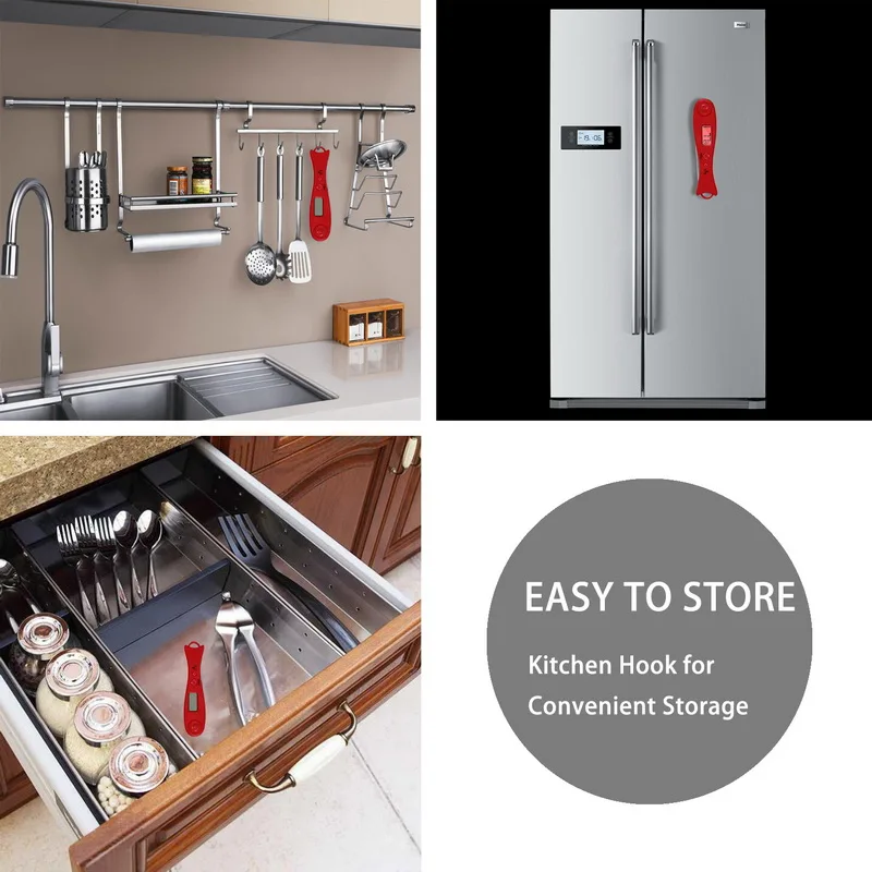 <Легко хранить: термометр имеет внутренний магнит и большое отверстие для подвешивания, чтобы его можно было хранить на холодильнике или повесить на кухонные крючки.