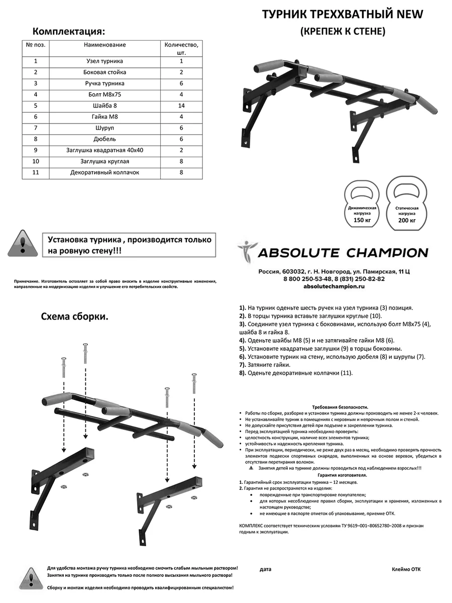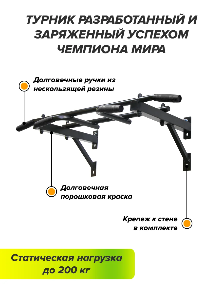 Турник настенный Треххватный "Нью" заряженный успехом чемпионов! Отличный спортивный тренажер, специально для вас, был разработан действующим чемпионом Мира профессиональным боксёром Андреем Сироткиным и изготовлен фабрикой спорттоваров Absolute Champion. Профессиональный турник для дома производится из надёжного профиля 40*40. Для удобных тренировок мы сами изготавливаем ручки из комфортной и долговечной резины.