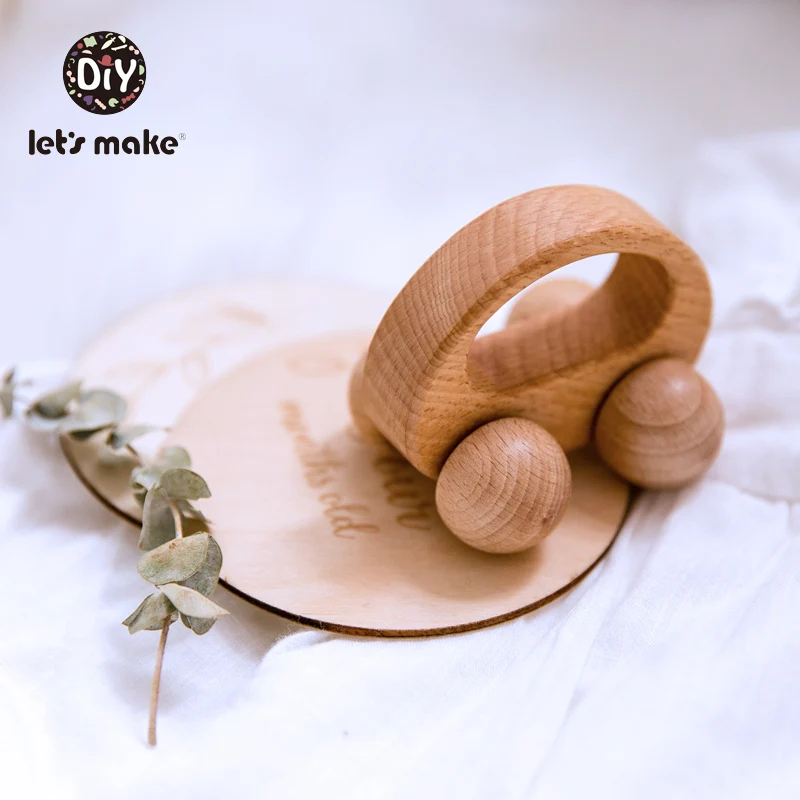 Детские игрушки Let's Make, 1 шт., деревянный автомобиль из бука, деревянные блоки, Мультяшные развивающие игрушки Монтессори для детей, прорезыватели для зубов