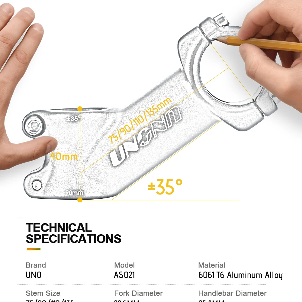 UNO 35 градусов рулевая колонка велосипеда 25,4 серебро Велосипедный вынос руля UNO mtb стволовых складной велосипед стволовых 75/90/110/130 мм mtb велосипедные аксессуары