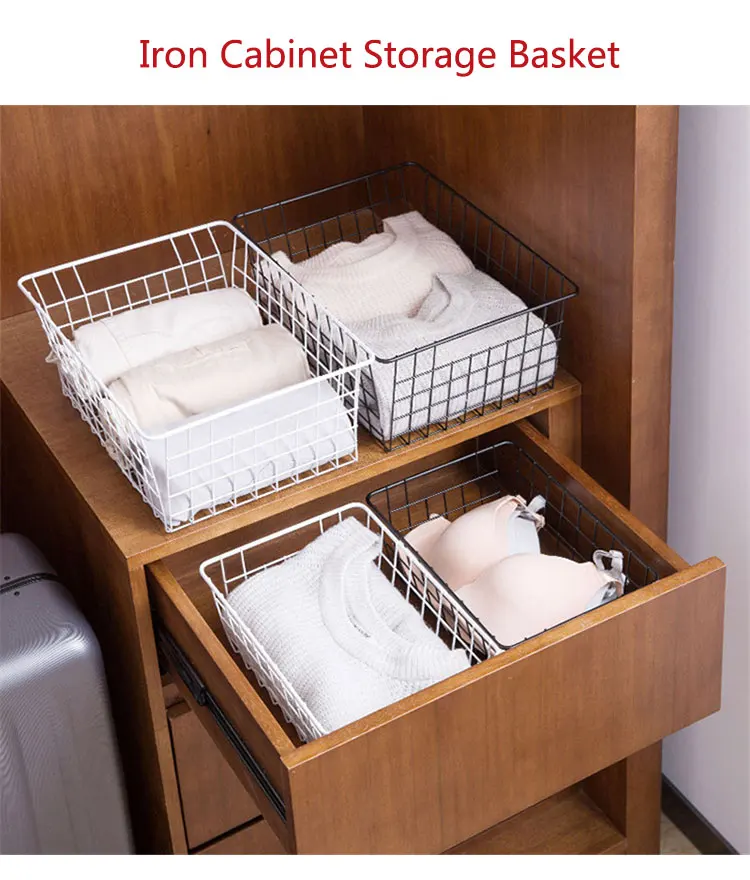 2 шт., белая железная корзина для хранения, настольные игрушки, корзины для хранения мелочей, держатель для бытовой кухни, ванной комнаты, гардероб, корзины для белья