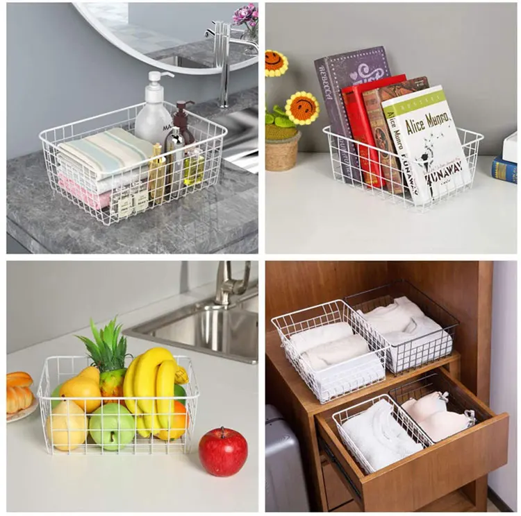 Металлическая проволочная корзина для хранения помогает сэкономить место, Отличный органайзер для хранения ваших продуктов питания, фруктов, книг, журналов, игрушек, косметики или ваших документов и предметов для хранения.