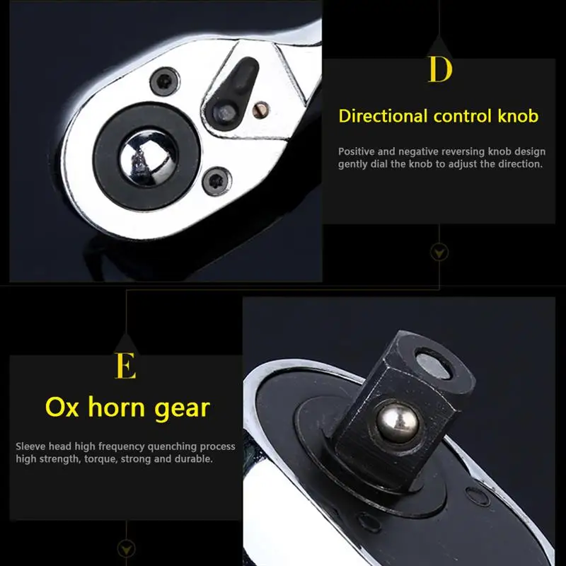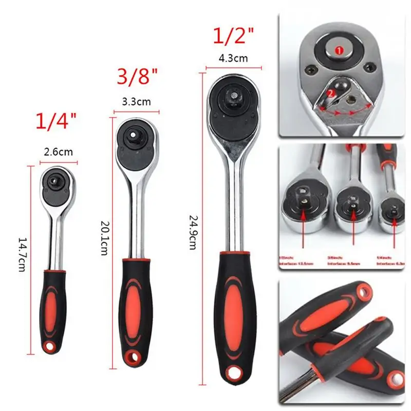 Храповые ручки имеют эргономичный дизайн и простой в использовании механизм обратного переключения с большим пальцем.