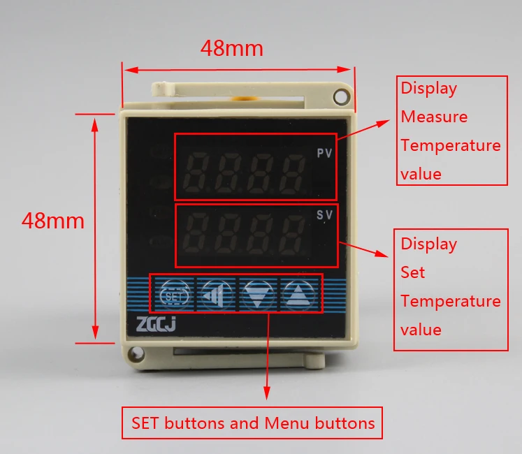 Мощность питания: 220 В переменного тока, 50/60 Гц Выход: реле. Будильник: с 1 сигнальным релейным выходом Диапазон температур: регулируемый (по умолчанию: 0-400 градусов) Тип входного датчика температуры: Универсальный вход: K , J, R,S,B,E,N,T,PT100,CU50 Крепление: 35 мм din Размер: 48*48*110 мм Температура контроля: Режим управления PID и режим включения-выключения регулируется (по умолчанию: режим управления PID)