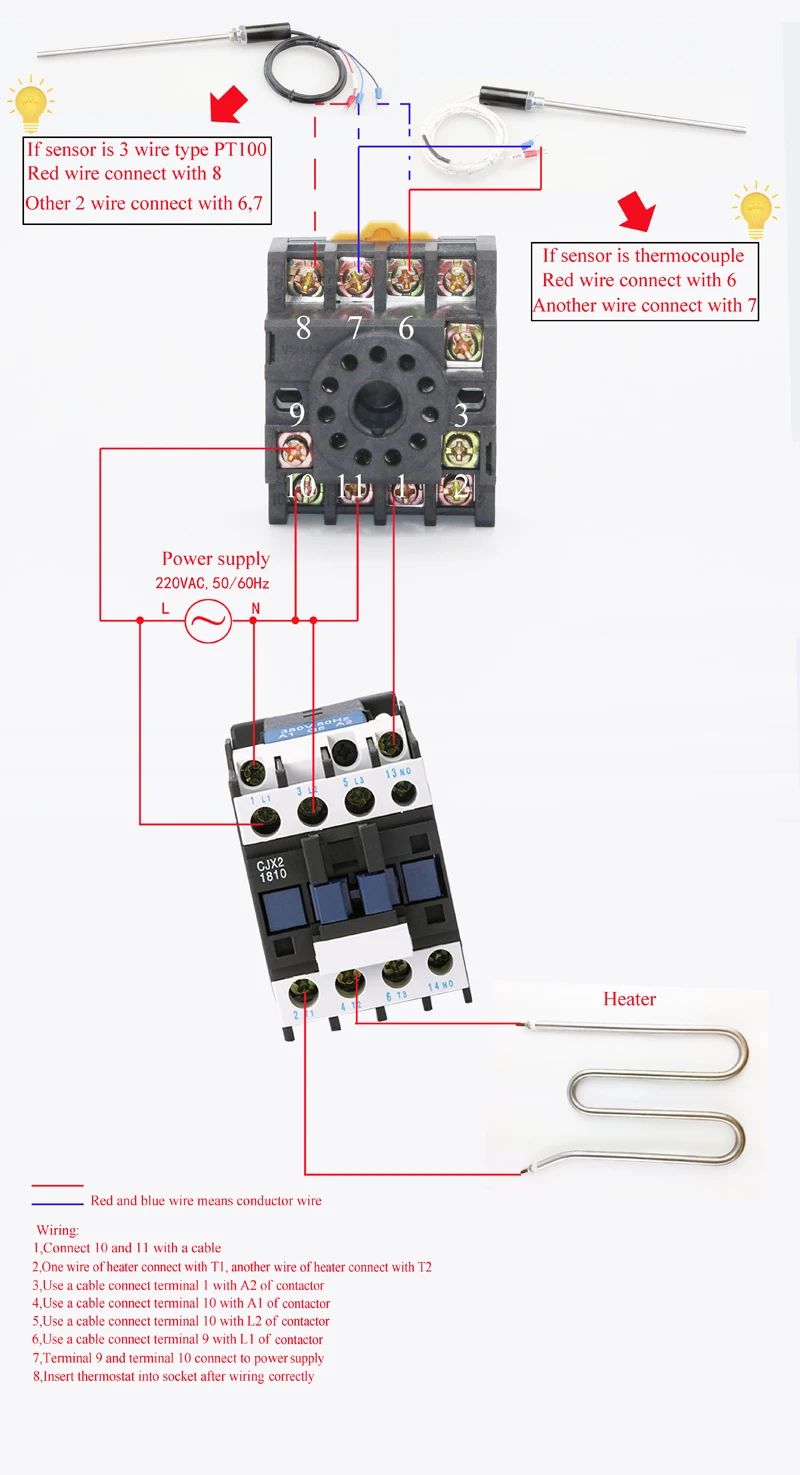 Схема подключения (если мощность нагрузки> 800 Вт, Пожалуйста, подключите контактор переменного тока дополнительно):