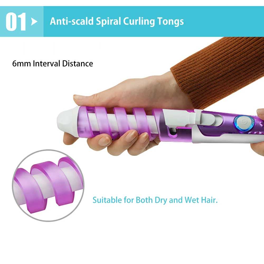 1.PTC ceramic heater can distribute heat evenly to avoid unnecessary heat damage, time saving and ready for an emergency use whenever you want. 2. One button control and fast heat up to 392℉/200℃ within 60 seconds to ensure styling efficiency and operation breeze, salon-like performance can widely suit different hair types. 3. Streamline body can deliver ergonomic and comfortable grips, the curling tongs can allow you to clip the ends of your hair and twist each time to get a stylish hairstyle. 4. Portable and lightweight design enables carrying convenience, suitable for both home and travel use, you can effortlessly create long lasting bouncy curls and soft waves with ease.