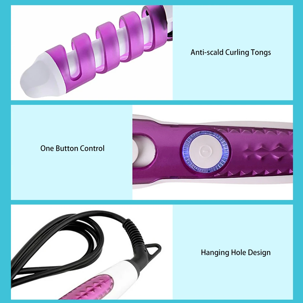 Material: ABS Color: Blue/Purple(Optional) Plug Type: US Plug/EU Plug(Optional) Voltage: 220-240V Rated Frequency: 50-60Hz Rated Power: 45W Heating Mode: PTC Ceramic Heating Max. Heating Temperature: 200℃/392℉ Power Cord Length: 1m/3.28ft Product Size: Approx. 30*3.5cm/11.81x1.37inch Note: Please allow some deviation due to manual measurement and make sure you do not mind before purchase. The color of the actual item may slightly vary from the images due to different computer screens and display settings. Thanks for your understanding! Package Included: 1* Hair Curling Iron