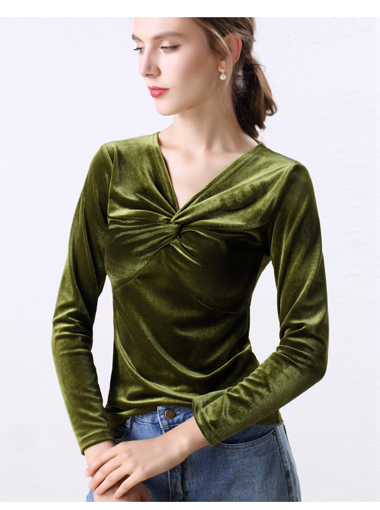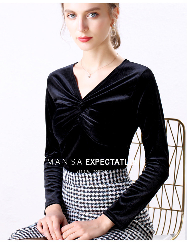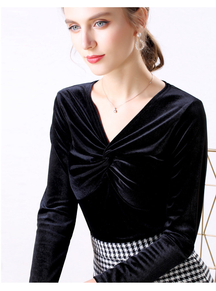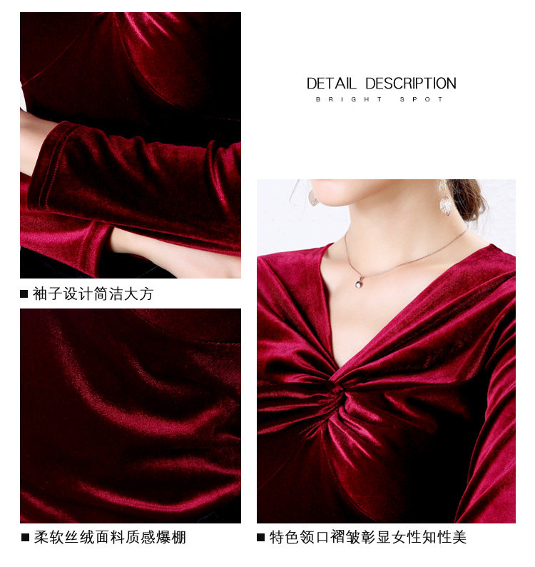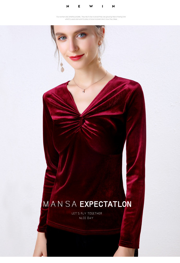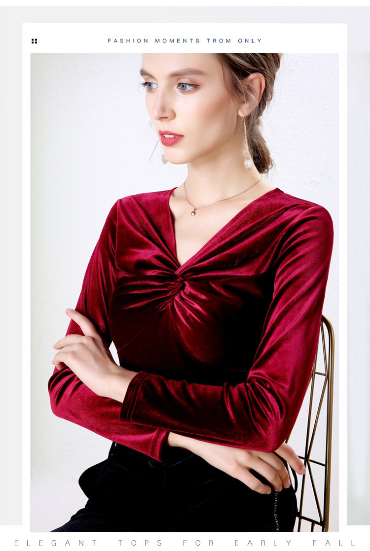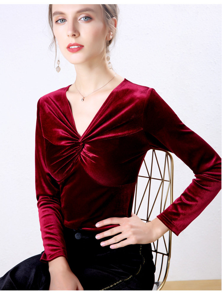 Autumn Woman Bottom Shirt Velvet Retro V-neck 2020 New Slim Long Sleeve Womans Shirts Bottoming Red Black Green