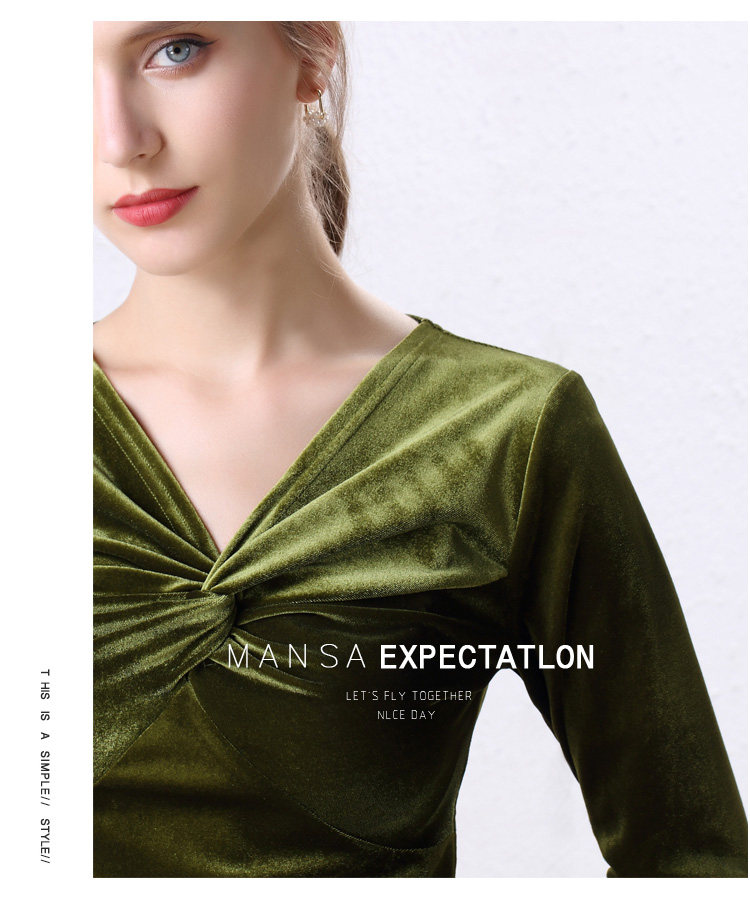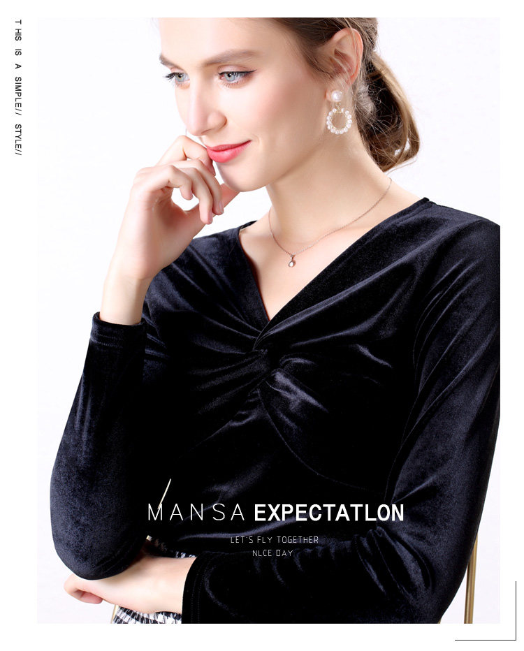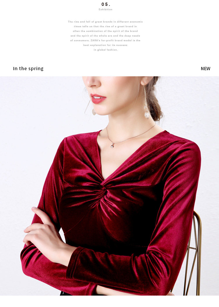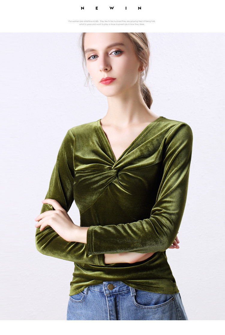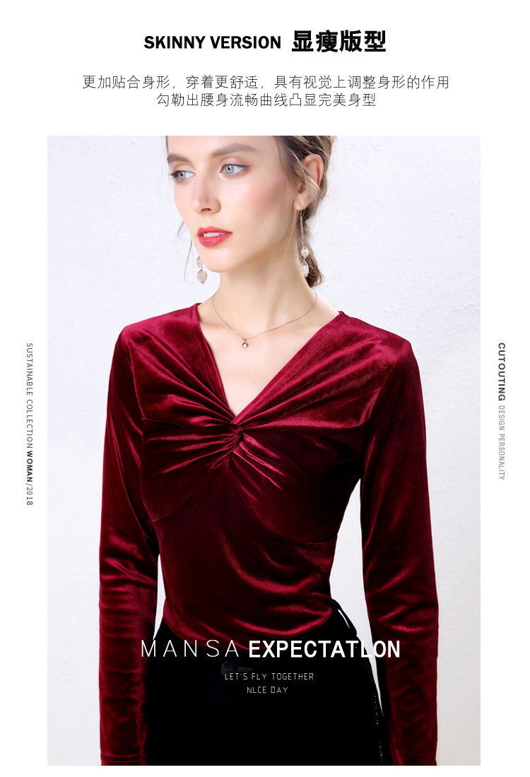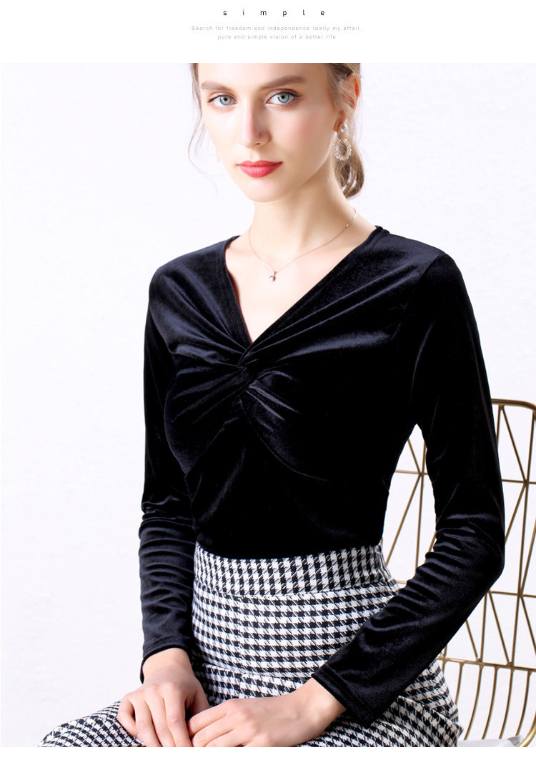 Autumn Woman Bottom Shirt Velvet Retro V-neck 2020 New Slim Long Sleeve Womans Shirts Bottoming Red Black Green