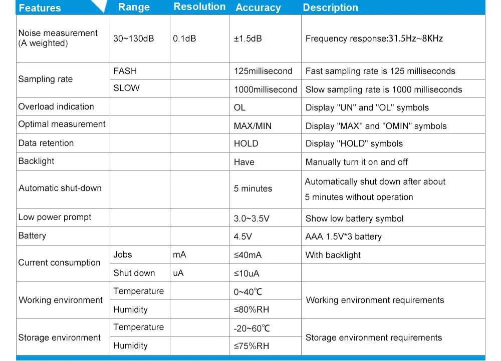 1. Продукт красивый и изысканный по внешнему виду, легко носить с собой 2. ЖК-дисплей с подсветкой, цифровой дисплей с первого взгляда 3. Частота дискретизации может свободно переключаться между "быстрыми/медленными" 4. Максимальное, минимальное, хранение данных 5. Автоматическое выключение, индикация перегрузки 6. Используя японскую технологию контроля стабильности напряжения TOREX LDO, потребление энергии продукта ниже 7. Может выдерживать однометровое приземление