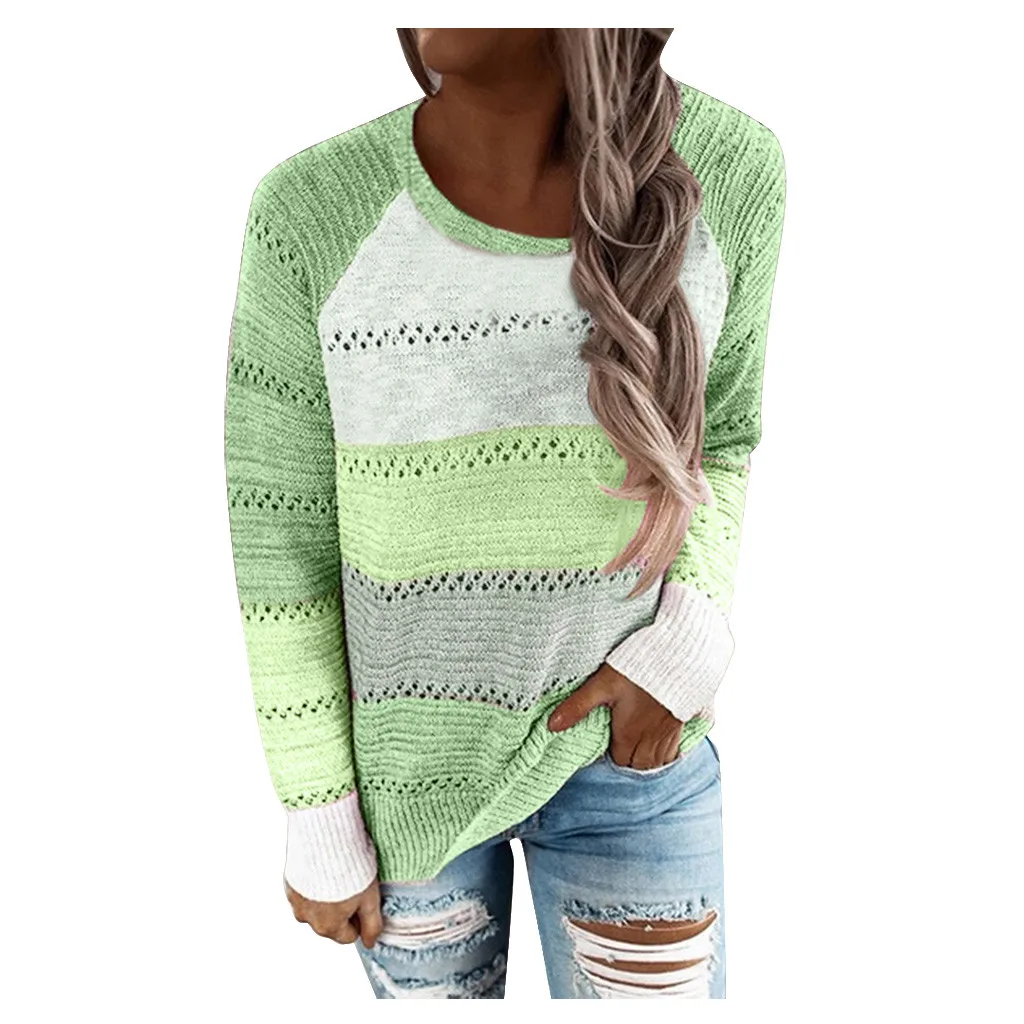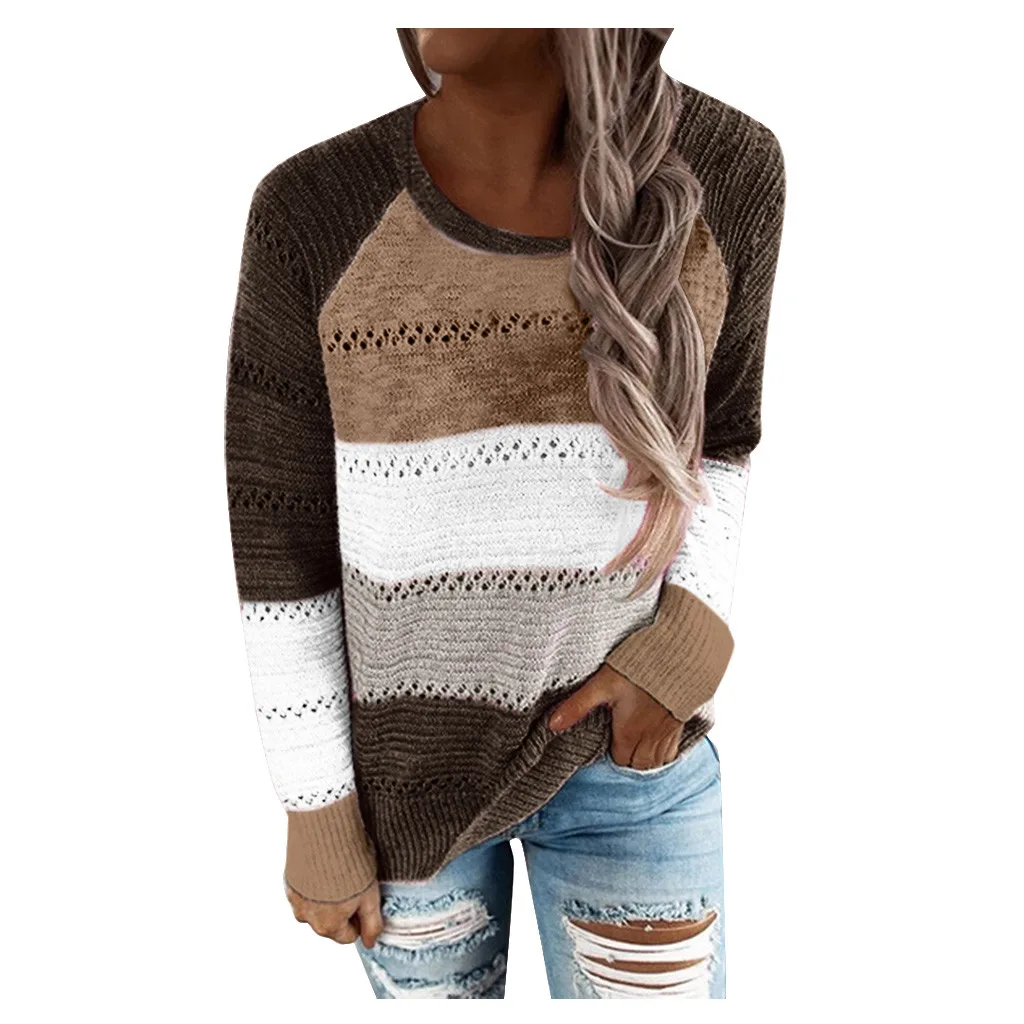 Модная женская Повседневная Блузка с круглым вырезом и длинными рукавами
