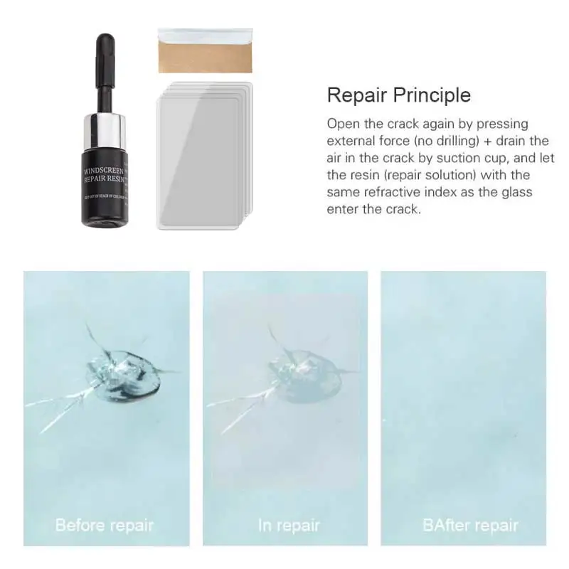 * Практичный набор для ремонта стекла автомобиля для всех разумных владельцев.