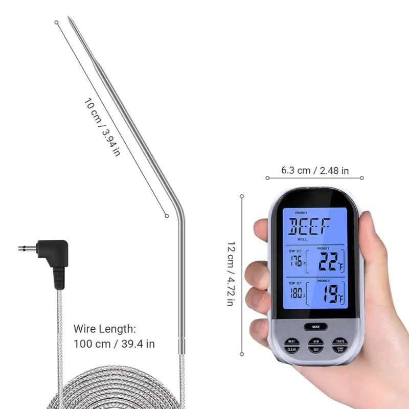 1. Двухзондовый беспроводной термометр для барбекю может использоваться в печах, барбекю для пикника, кухонных плит для барбекю.