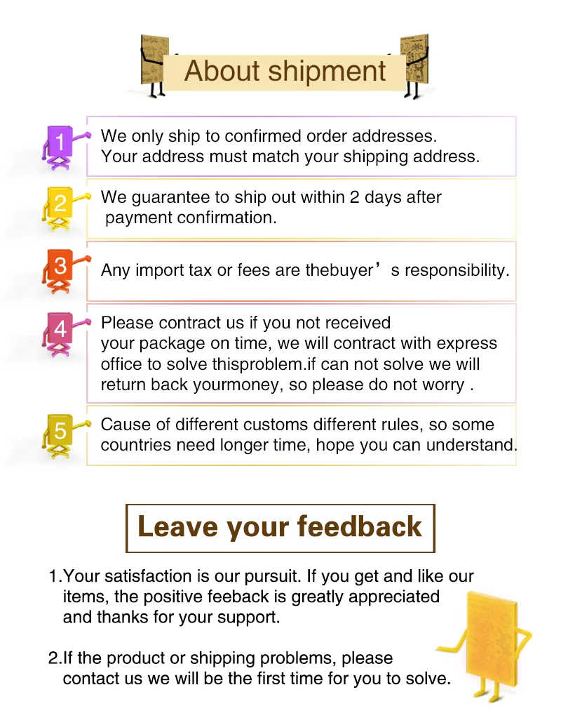 Если вы обнаружите, что товар отсутствует или поврежден при получении посылки, пожалуйста, не стесняйтесь обращаться к нам. Мы всегда дадим вам удовлетворенный результат!