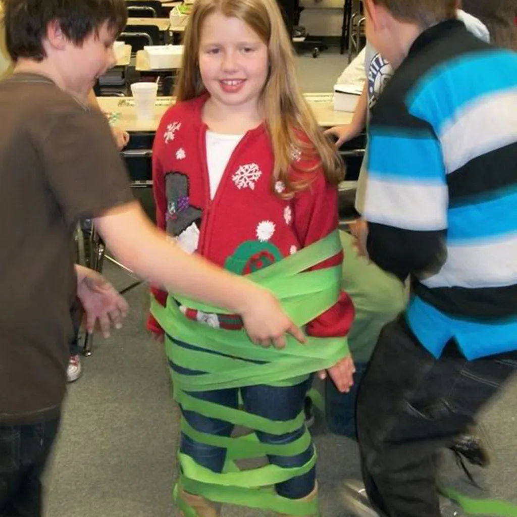 1. Christmas family, party games (wrap people into a Christmas tree, you can also hang accessories on the tree)