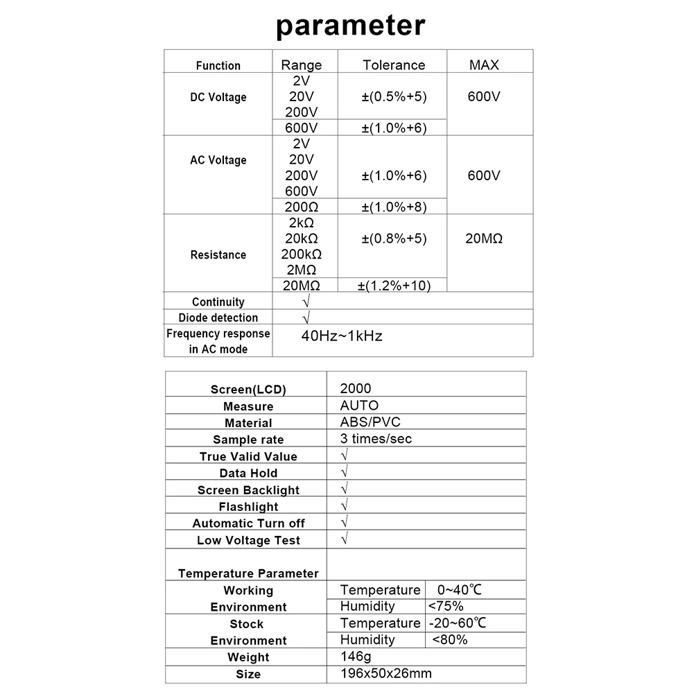 Функция измерения: батарея, сопротивление, переменный ток и напряжение постоянного тока