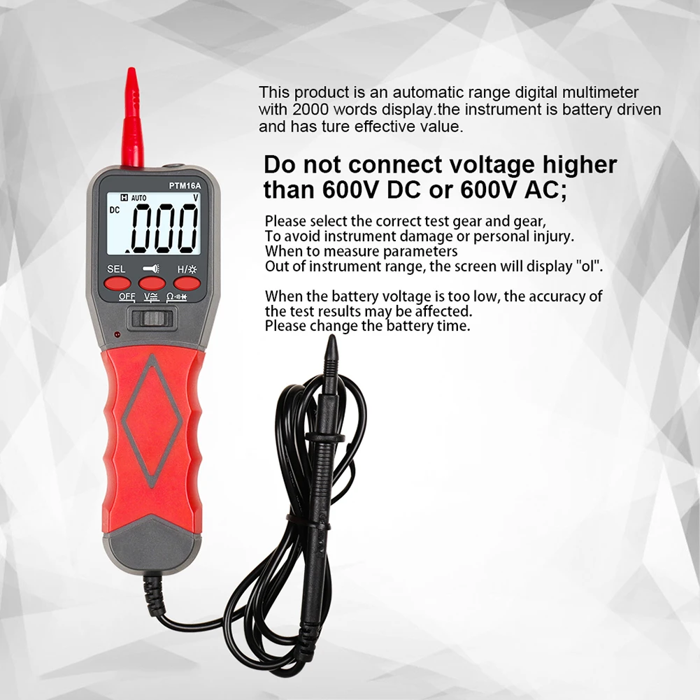-Портативный мультиметр перьевого типа, используемый для проверки переменного тока и напряжения постоянного тока, сопротивления, падения положительного напряжения диода и звуковой непрерывности.