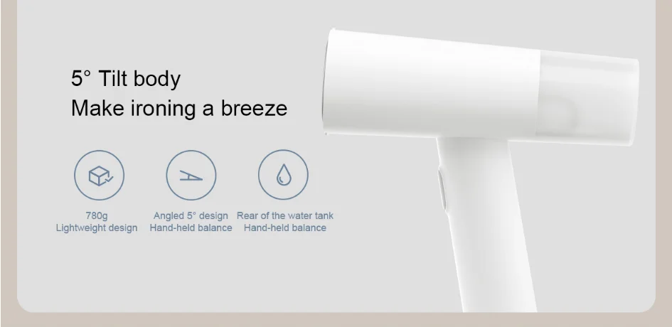 Добавьте воду сразу Правильно гладить всю семейную одежду Съемный большой резервуар для воды 160 мл *, количество воды прозрачно с первого взгляда, 6 рубашек можно гладить, добавляя воду одновременно. Водопоглощающая структура оптимизирована для решения проблемы нехватки пара во время плоской глажки, не оставляя остаточной воды и утечки. Тело наклона 5 ° Гладить на ветру Удобно и удобно держать. Резервуар для воды помещается сзади, чтобы обеспечить баланс рук, чтобы не быть тяжелым сверху, и удерживание утюга в течение длительного времени не будет слишком утомительным.