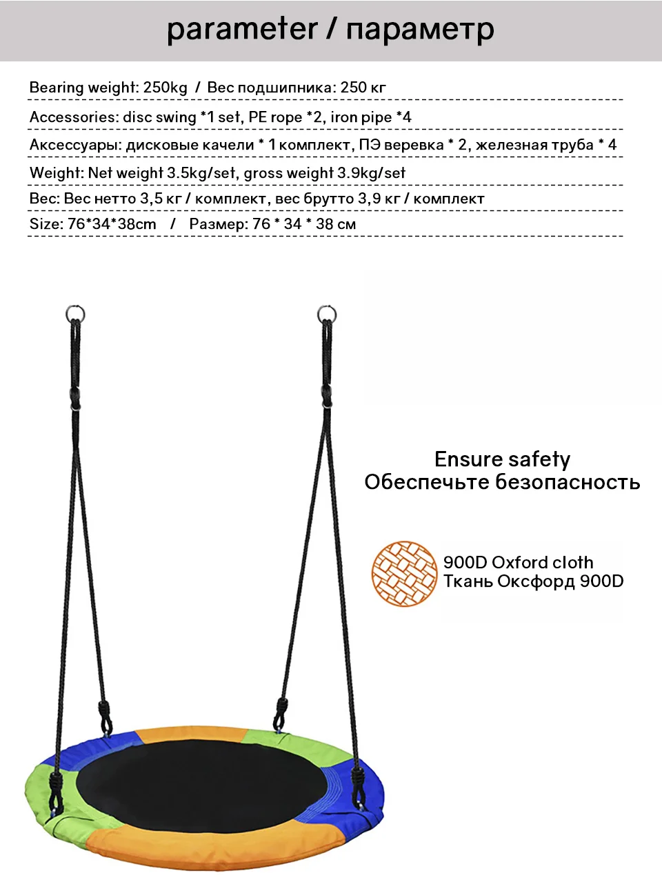 Product accessories: disc swing *1 set, PE rope *2, iron pipe *4